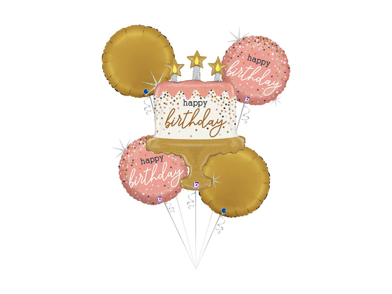 Bukiet balonów foliowych Tort Happy Birthday - 26" + 14" - 5 szt.