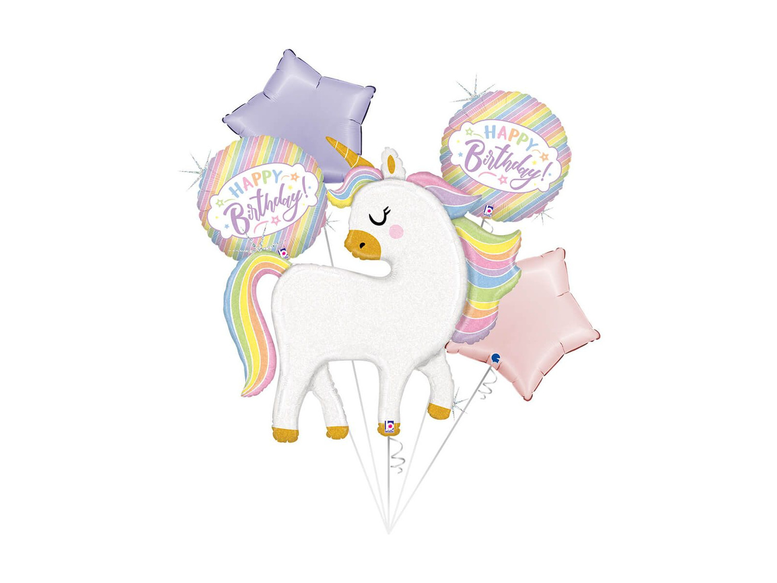 Bukiet balonów foliowych Jednorożec Happy Birthday - 37" + 17" - 5 szt.