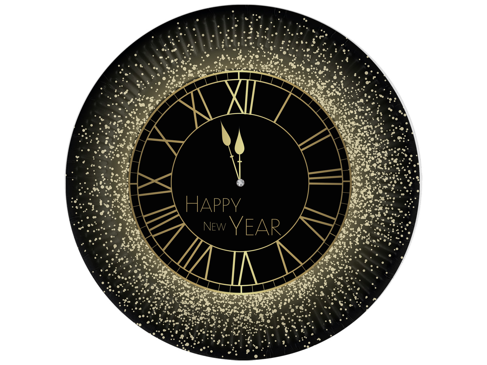 Talerzyki papierowe na Sylwestra Nowy Rok Happy New Year - 18 cm - 6 szt.