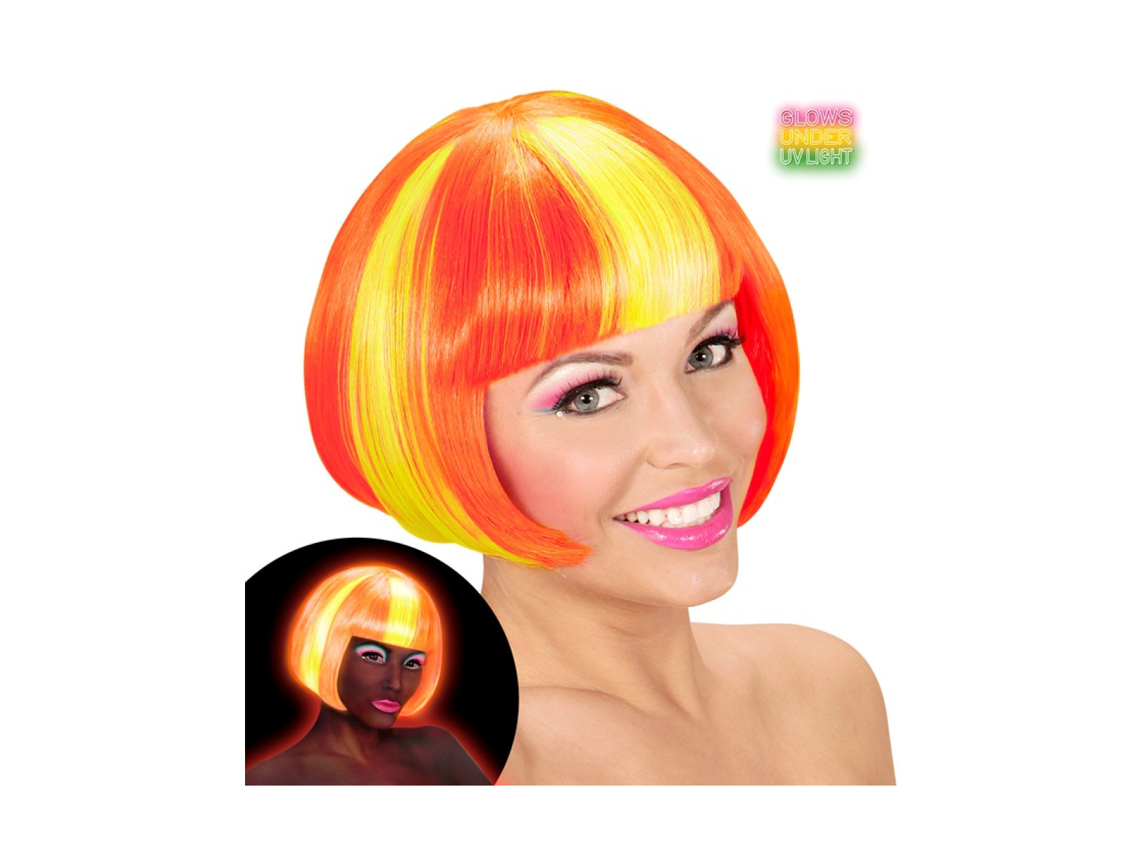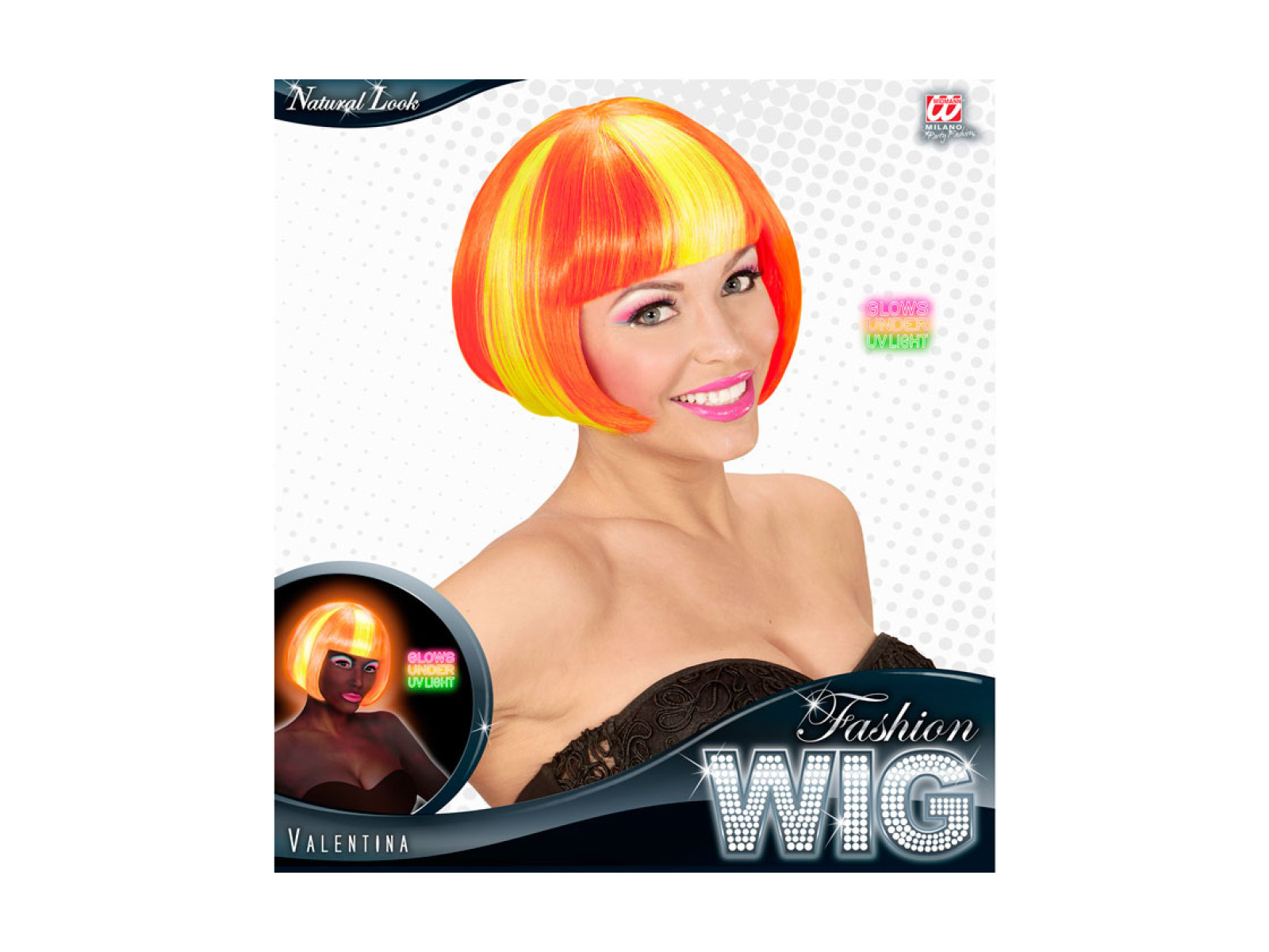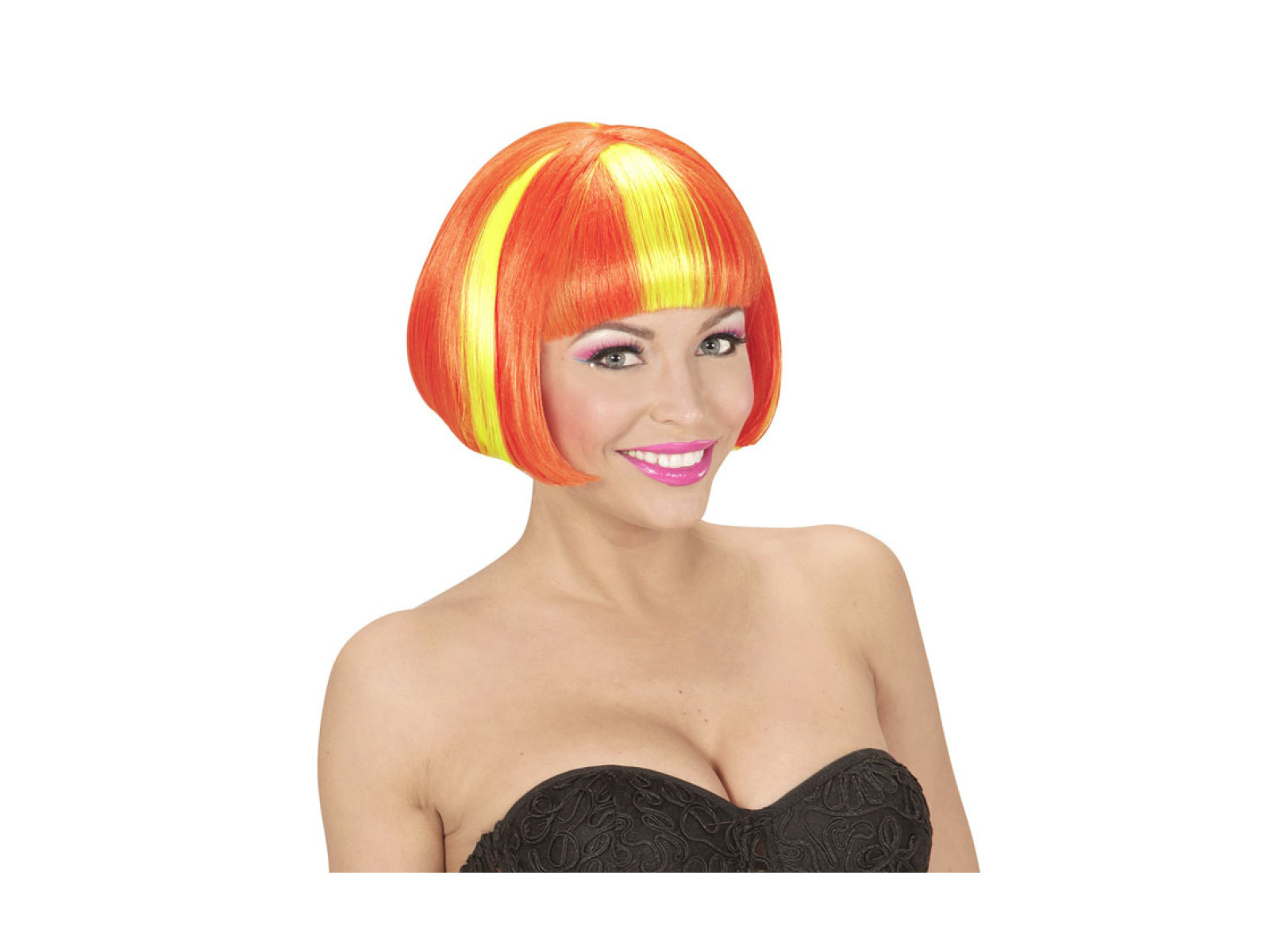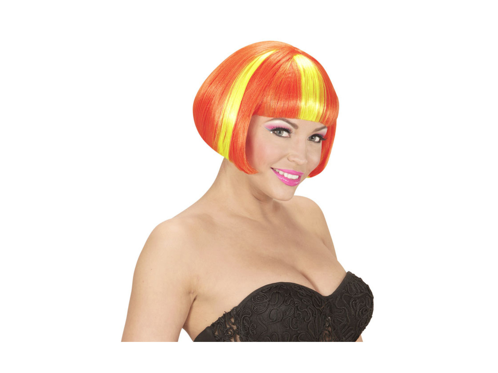 Peruka Valentina neonowożółta z pomarańczowymi pasemkami