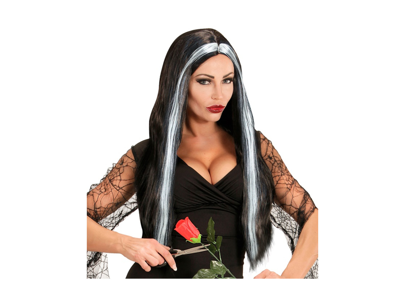 Peruka Mortisia czarno-biała długa