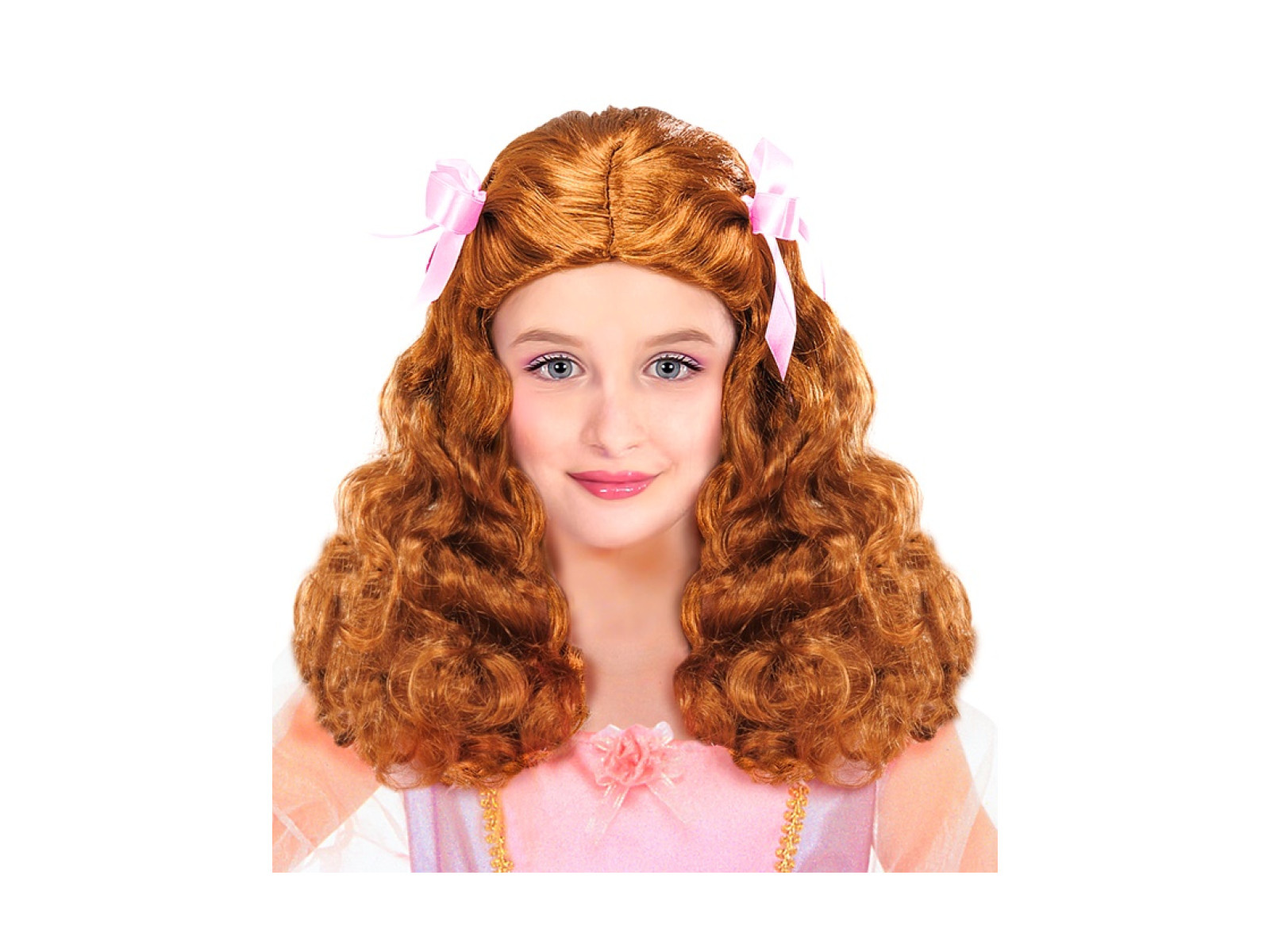 Peruka Łagodnej Księżniczki z satynowymi wstążkami, brązowa
