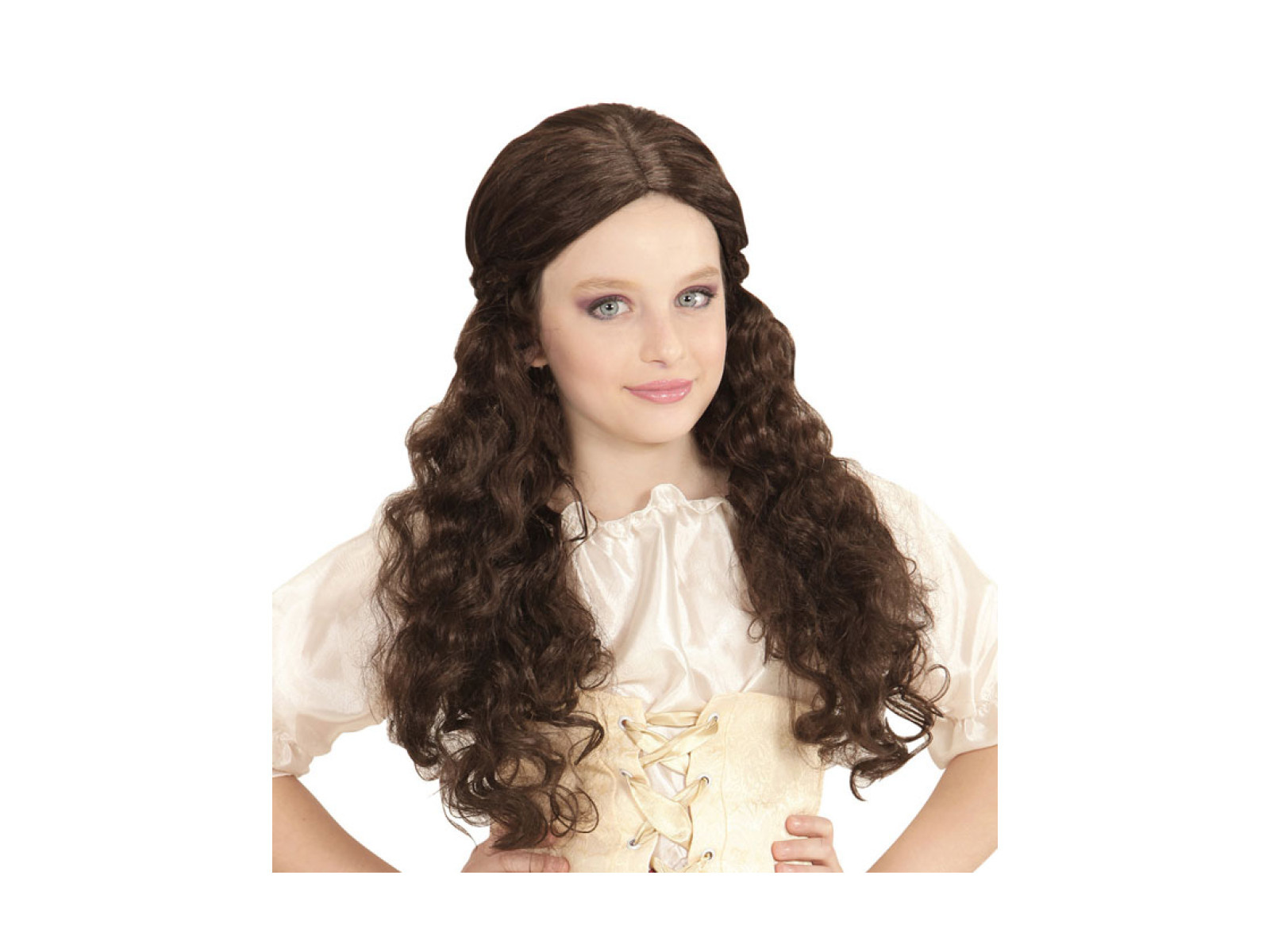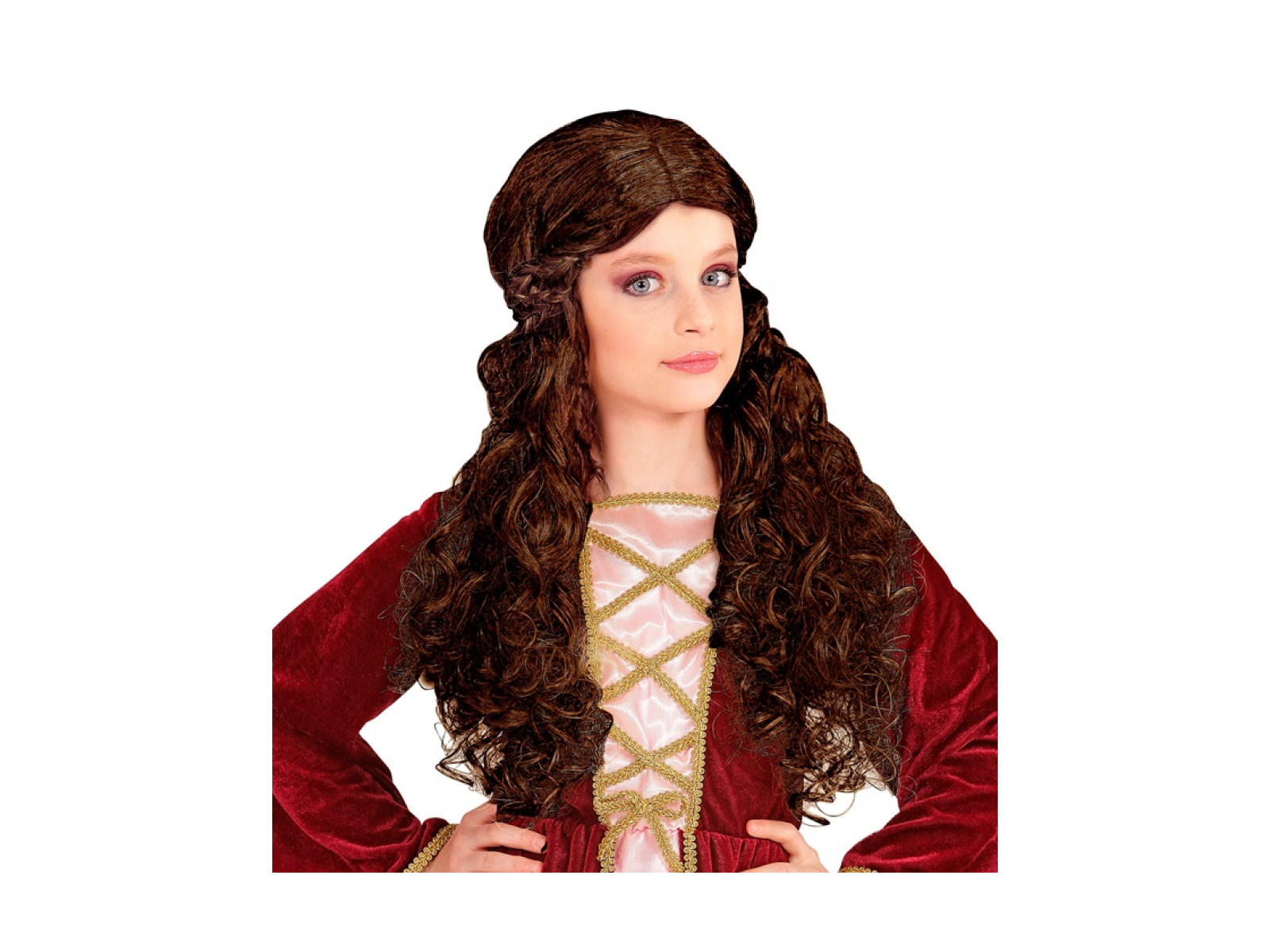 Brązowa peruka średniowiecznej dziewczyny