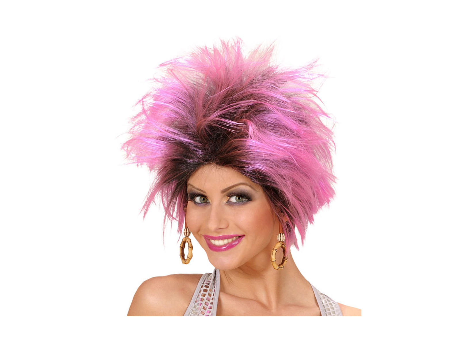 Peruka Urban Vibe z kolczykami, różowo-czarna