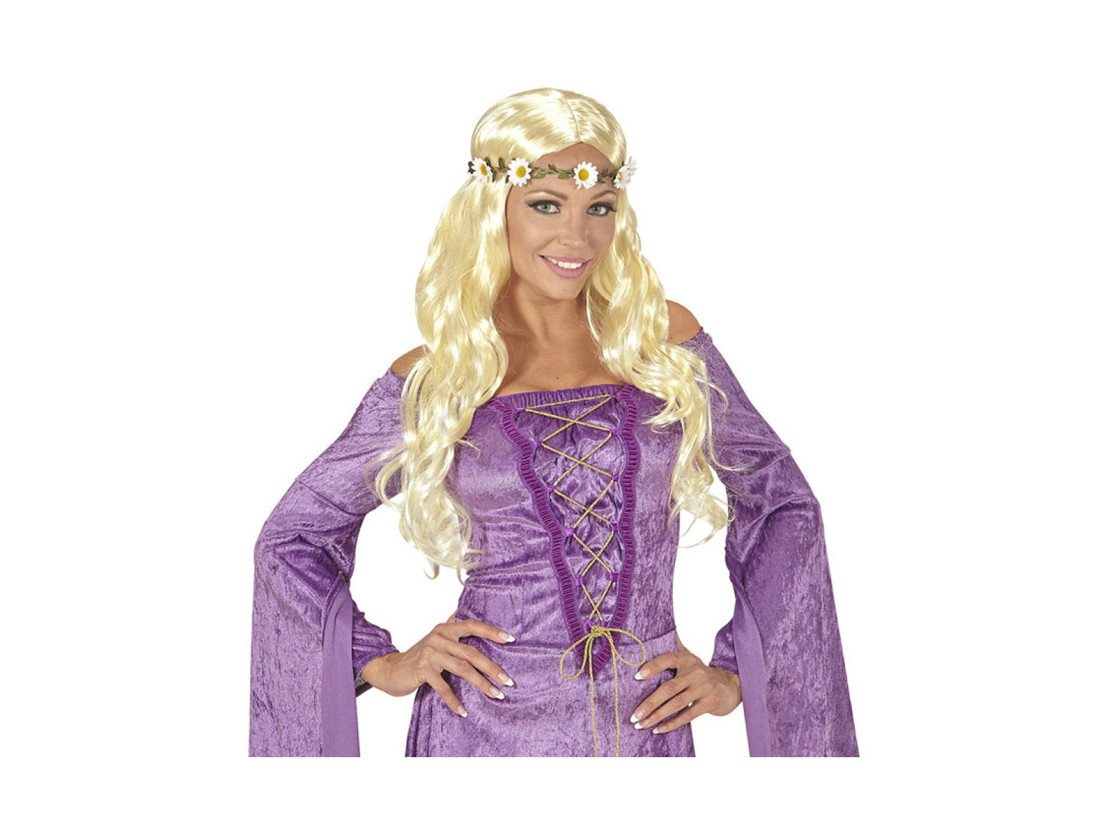 Blond peruka hipis z opaską w stokrotki