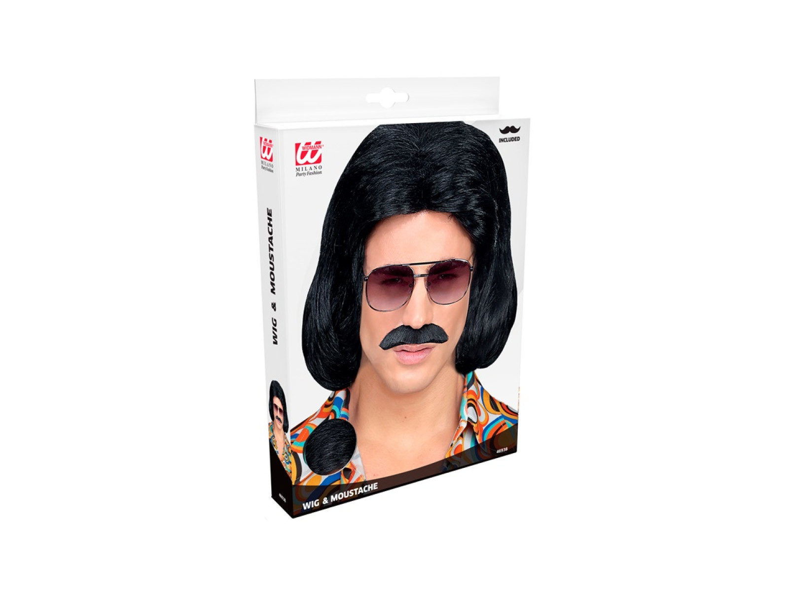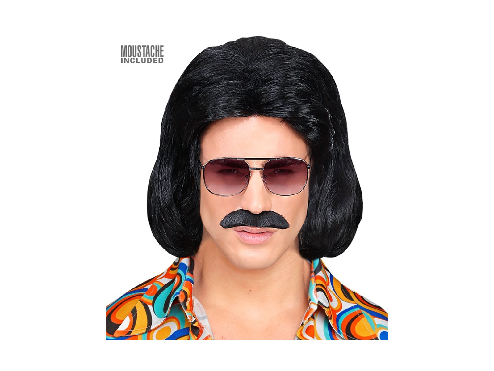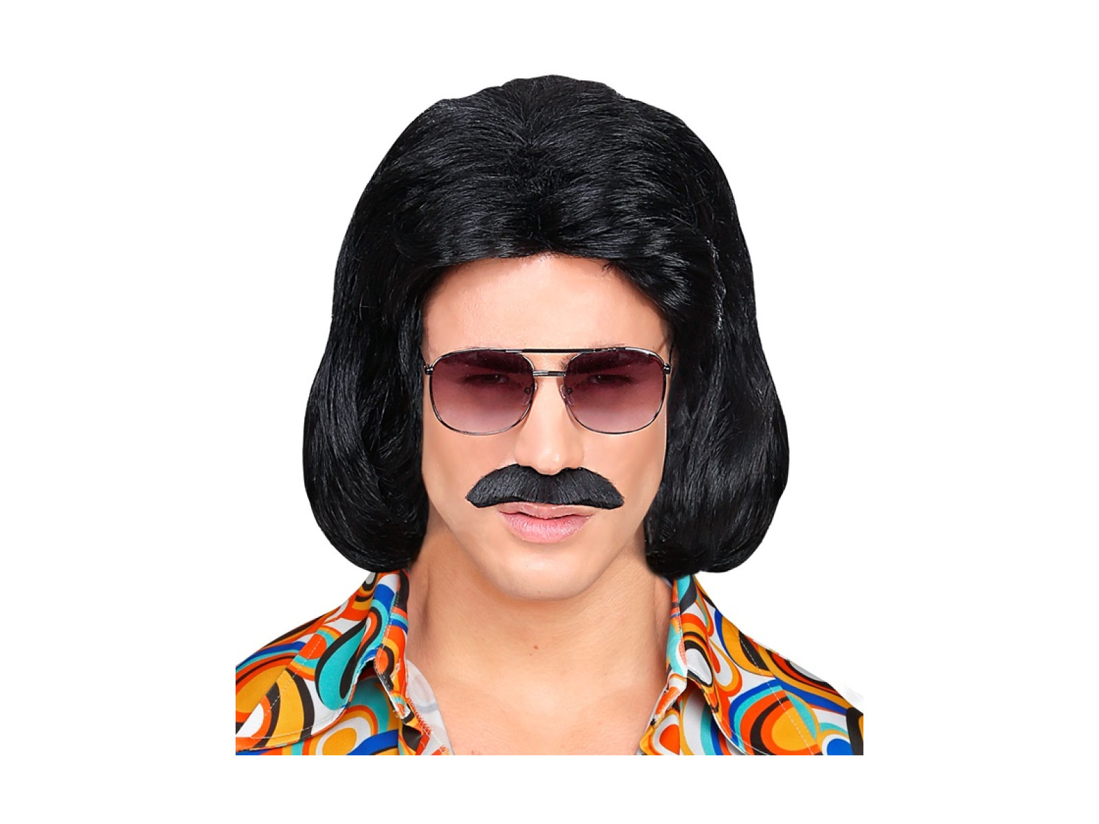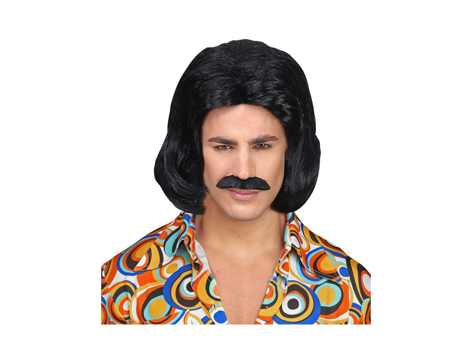 Czarna peruka Dandy z lat 70. z wąsami