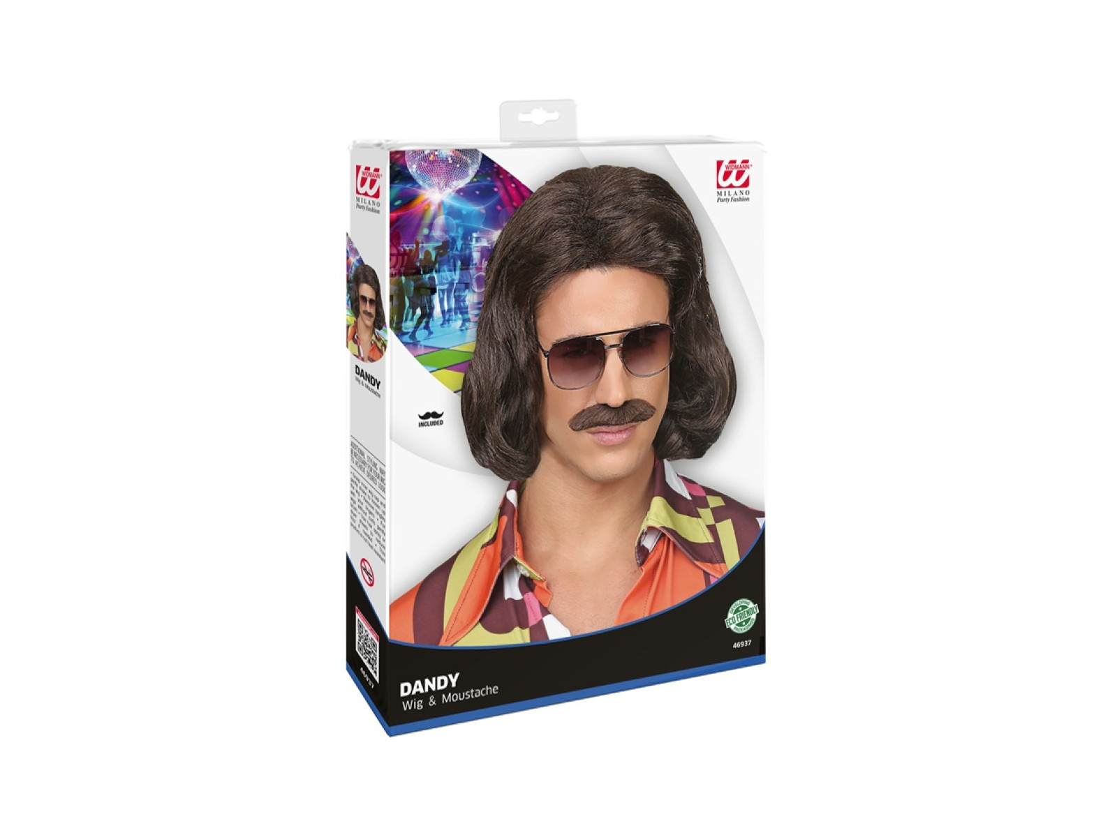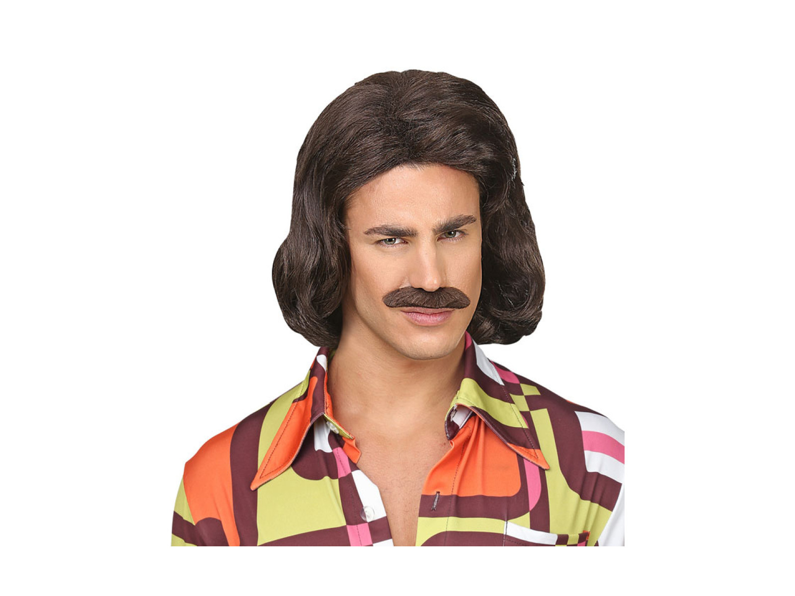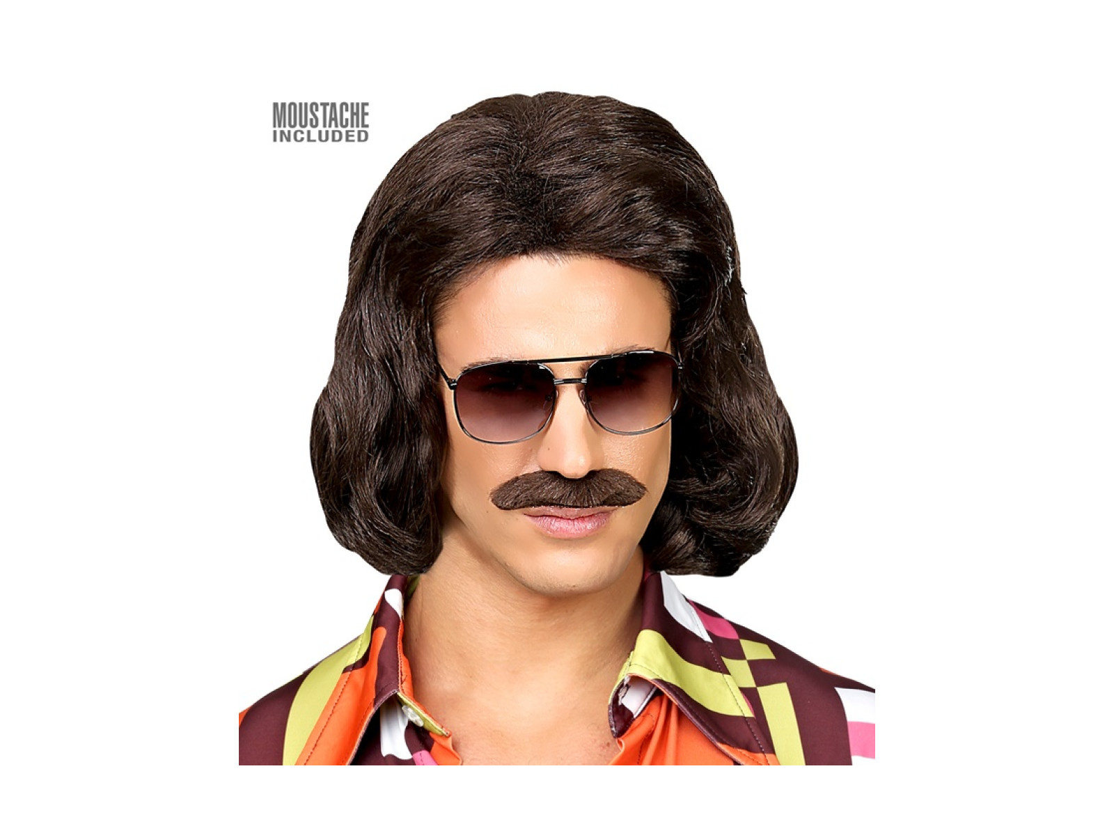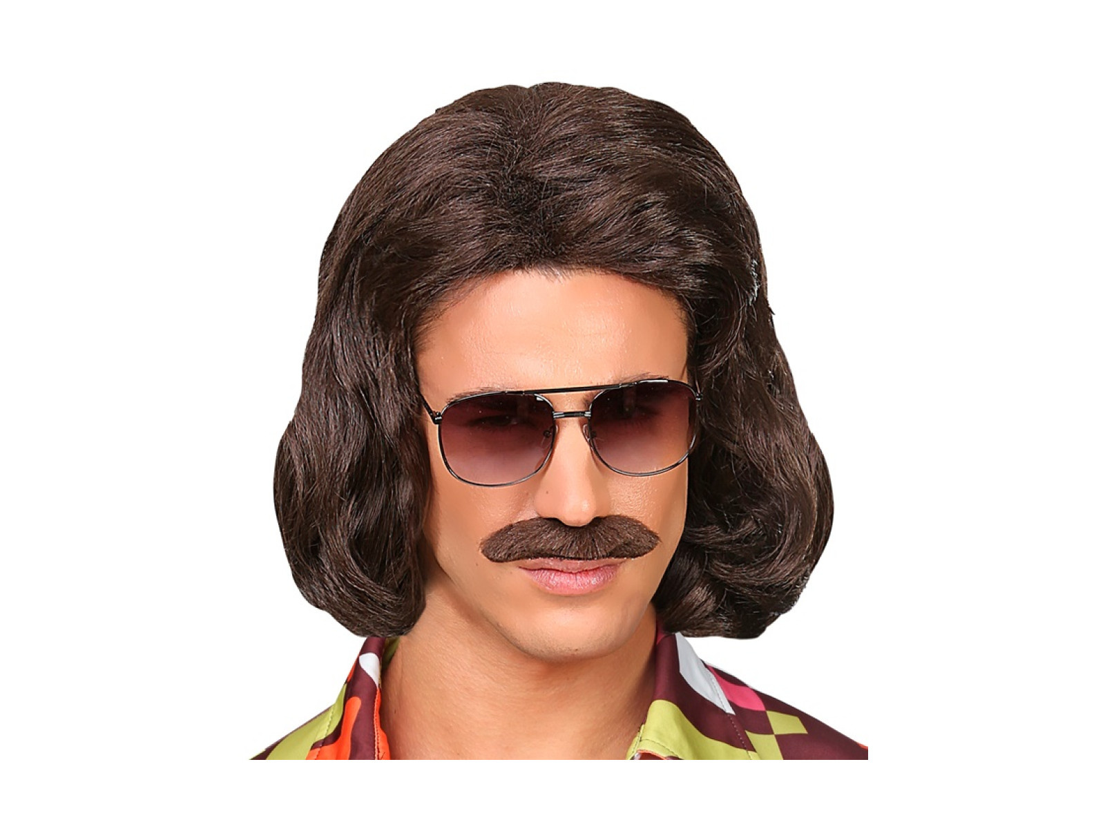 Brązowa peruka Dandy z lat 70. z wąsami
