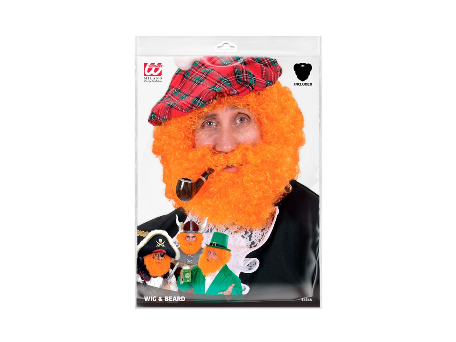 Pomarańczowa peruka kręcona Scots & Irish z brodą
