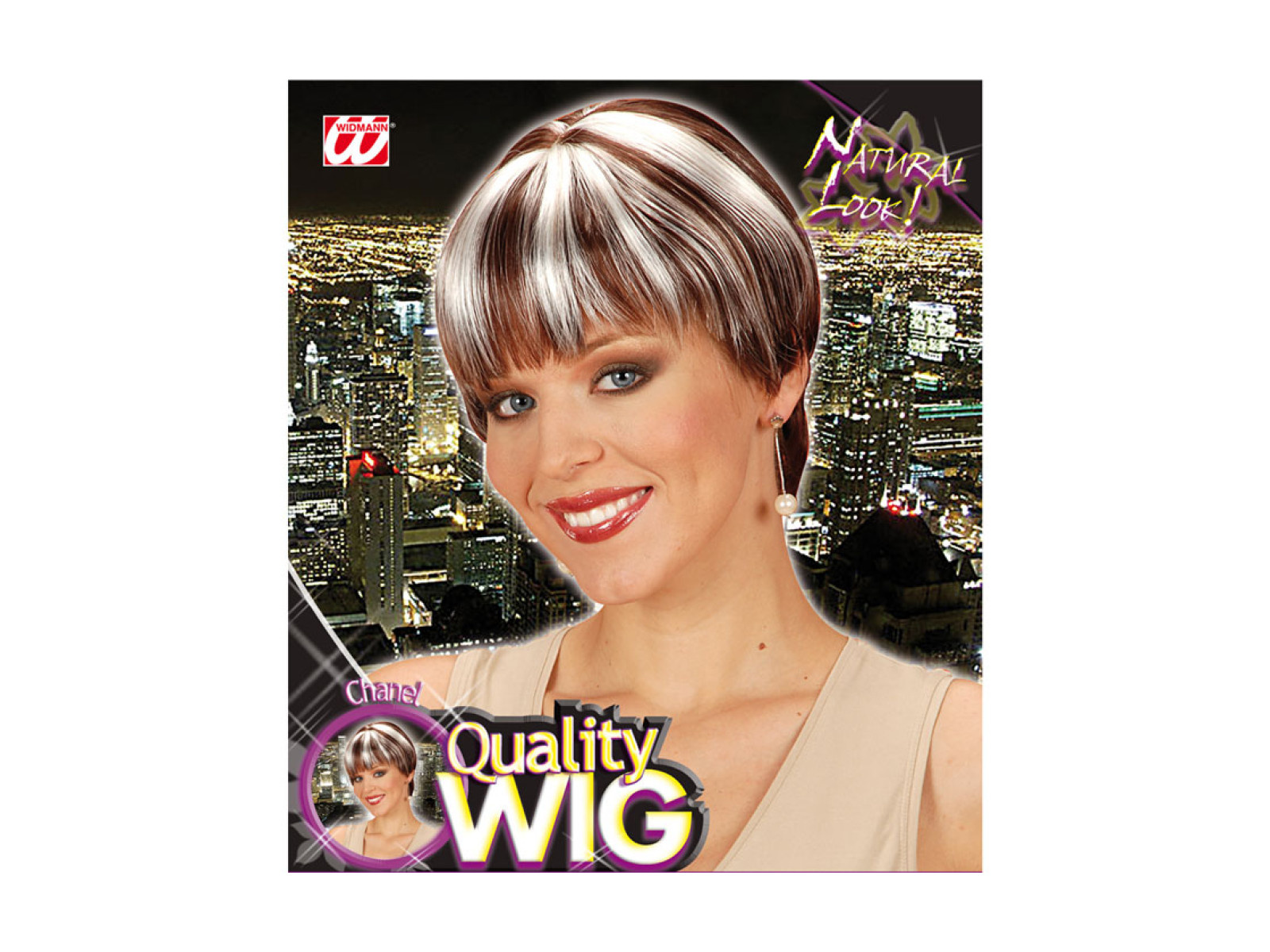 Peruka Chanel z siateczką skórną, brązowa z blond pasemkami