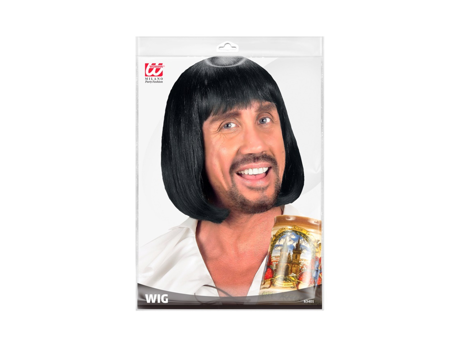 Czarna peruka średniowiecznego mężczyzny