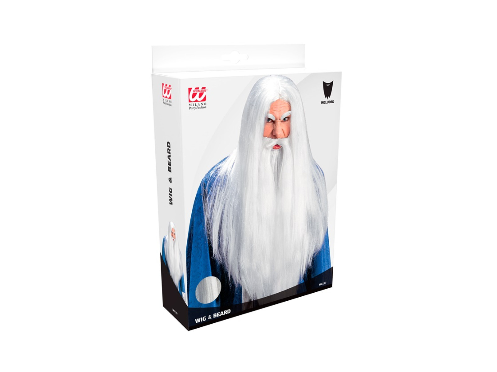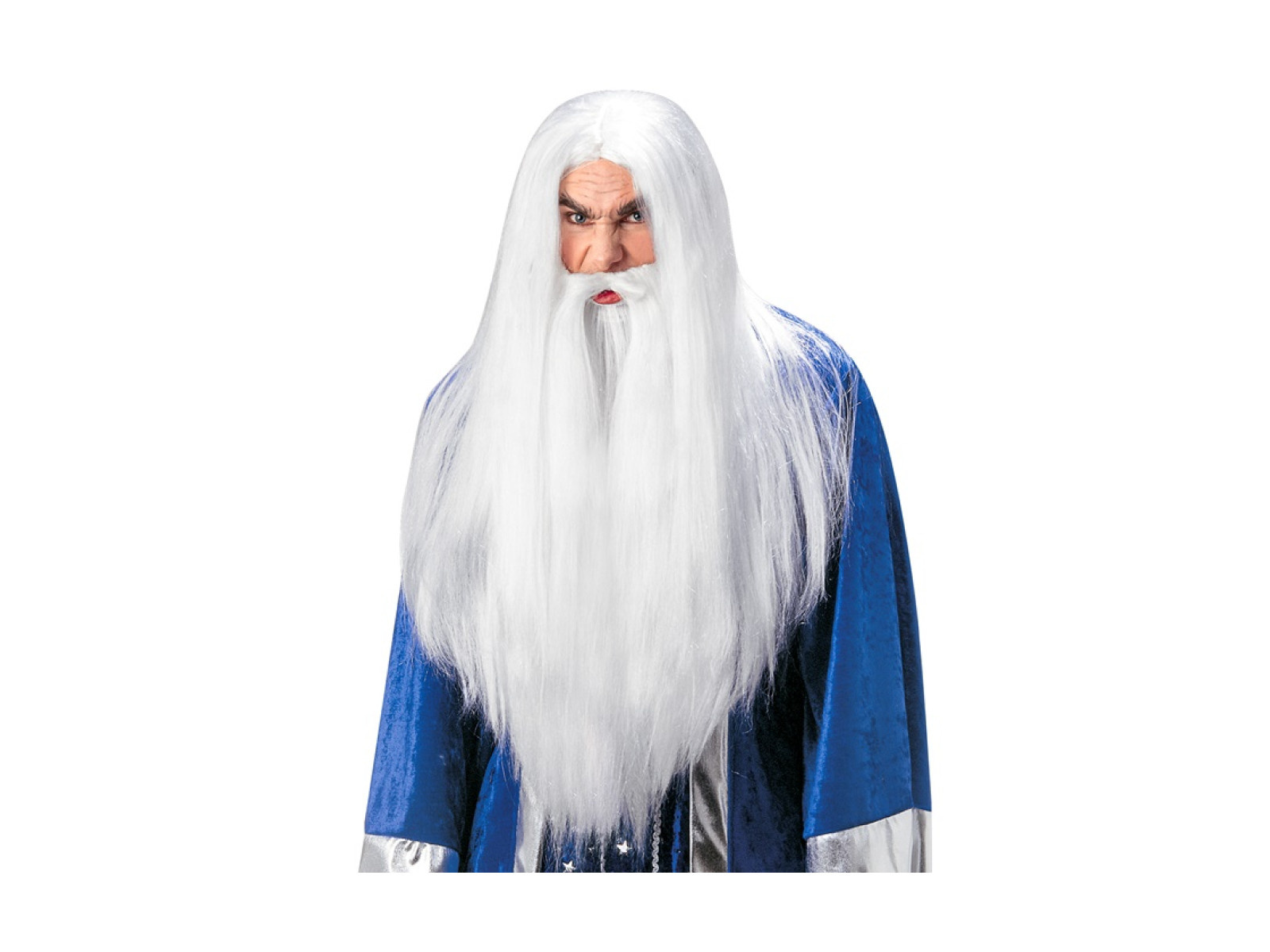 Peruka Czarodzieja z bardzo długą brodą i wąsami
