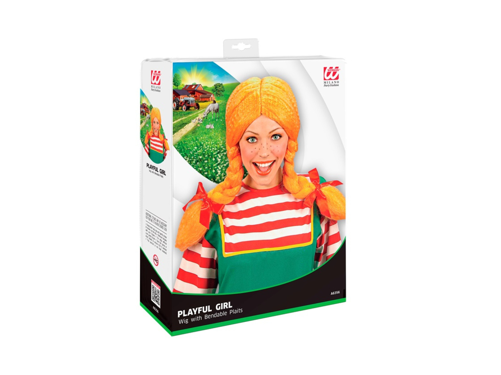 Peruka ruda dziewczynka z wyginanymi warkoczami
