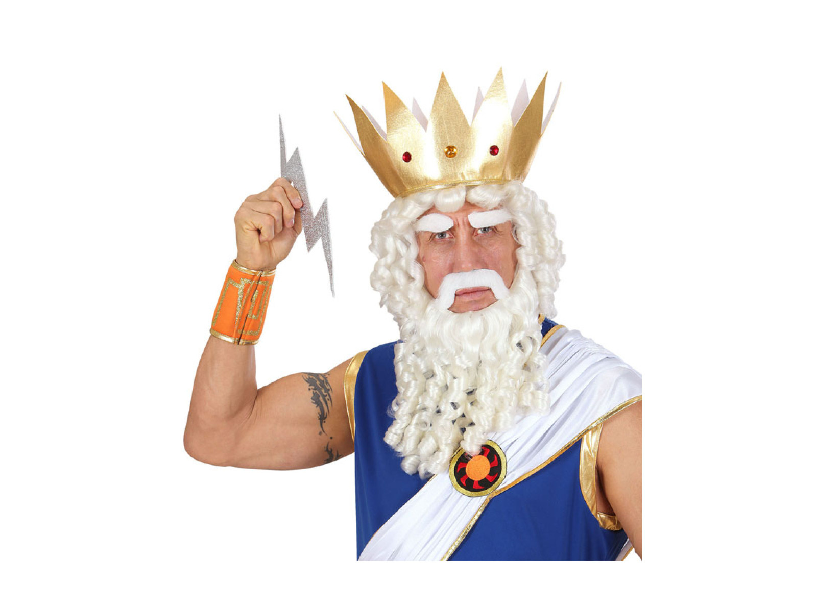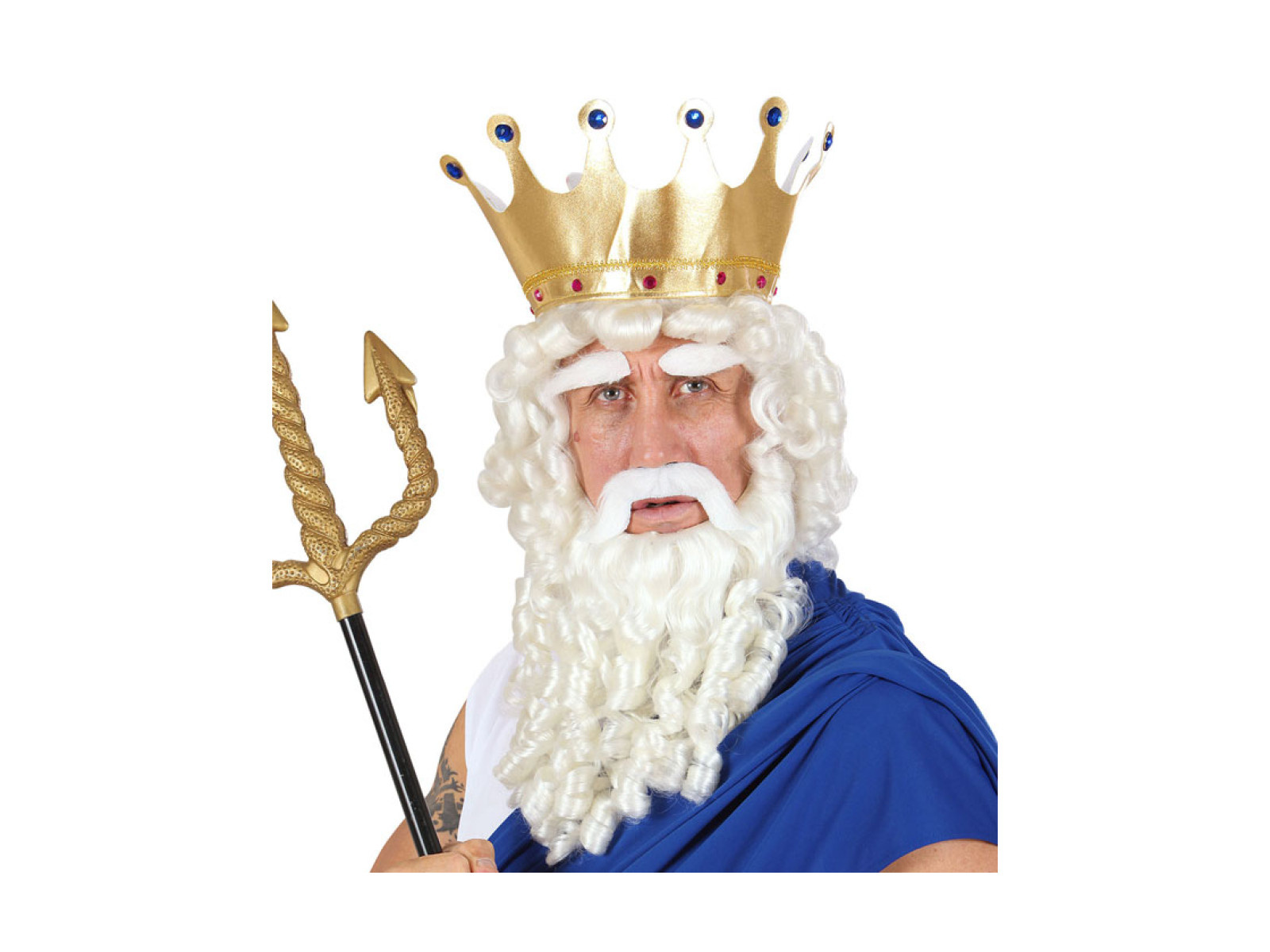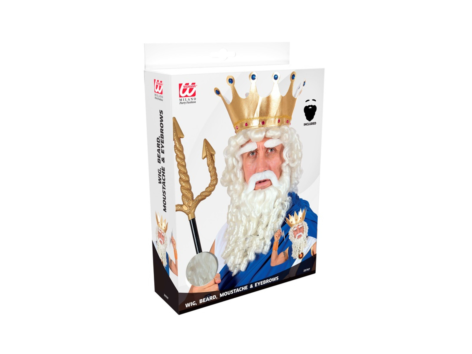 Biała peruka kręcone loki z brodą, wąsami i brwiami