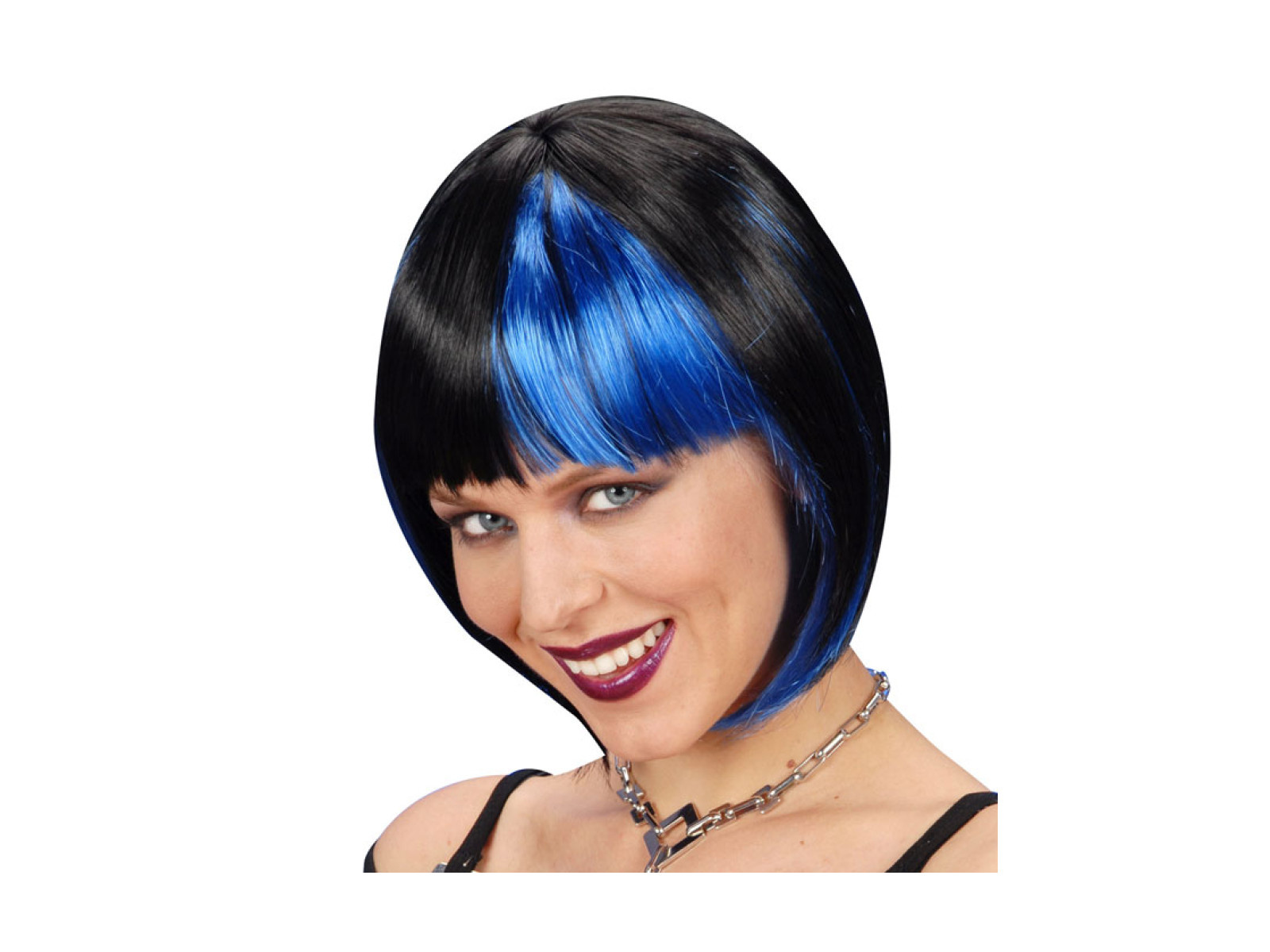 Peruka Zoey - czarna z niebieskimi pasemkami