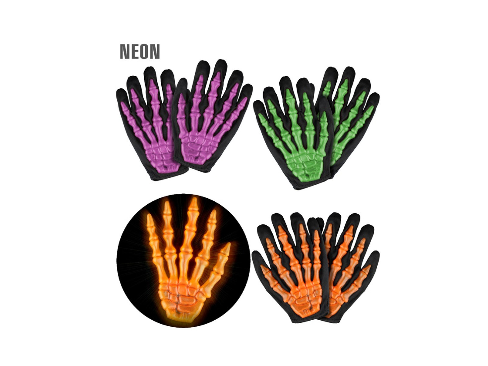 Neonowe trójwymiarowe rękawiczki kościotrupa - 3 kolory, dla dzieci