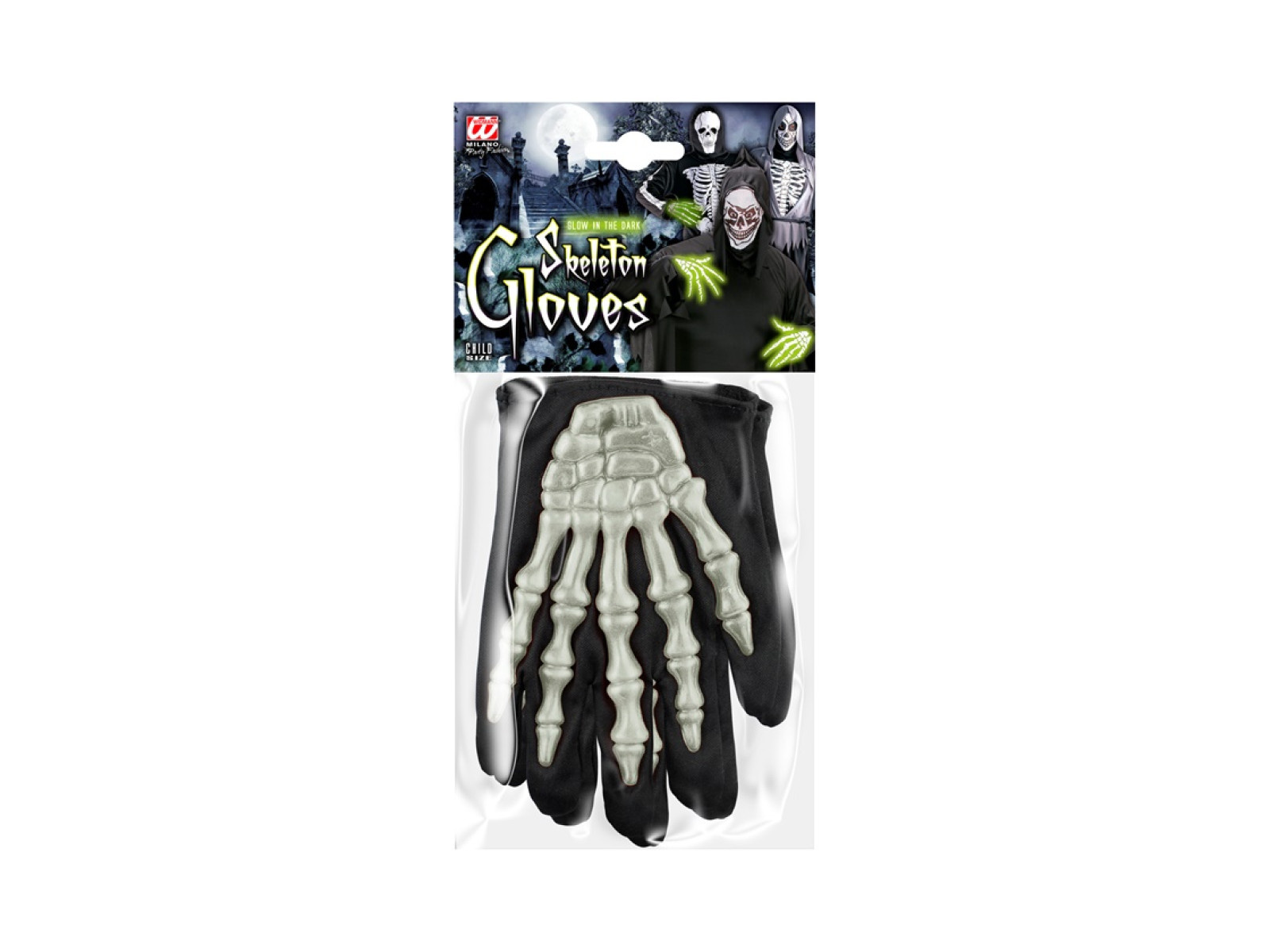 Świecące w ciemności 3D rękawiczki kościotrupa - dla dzieci