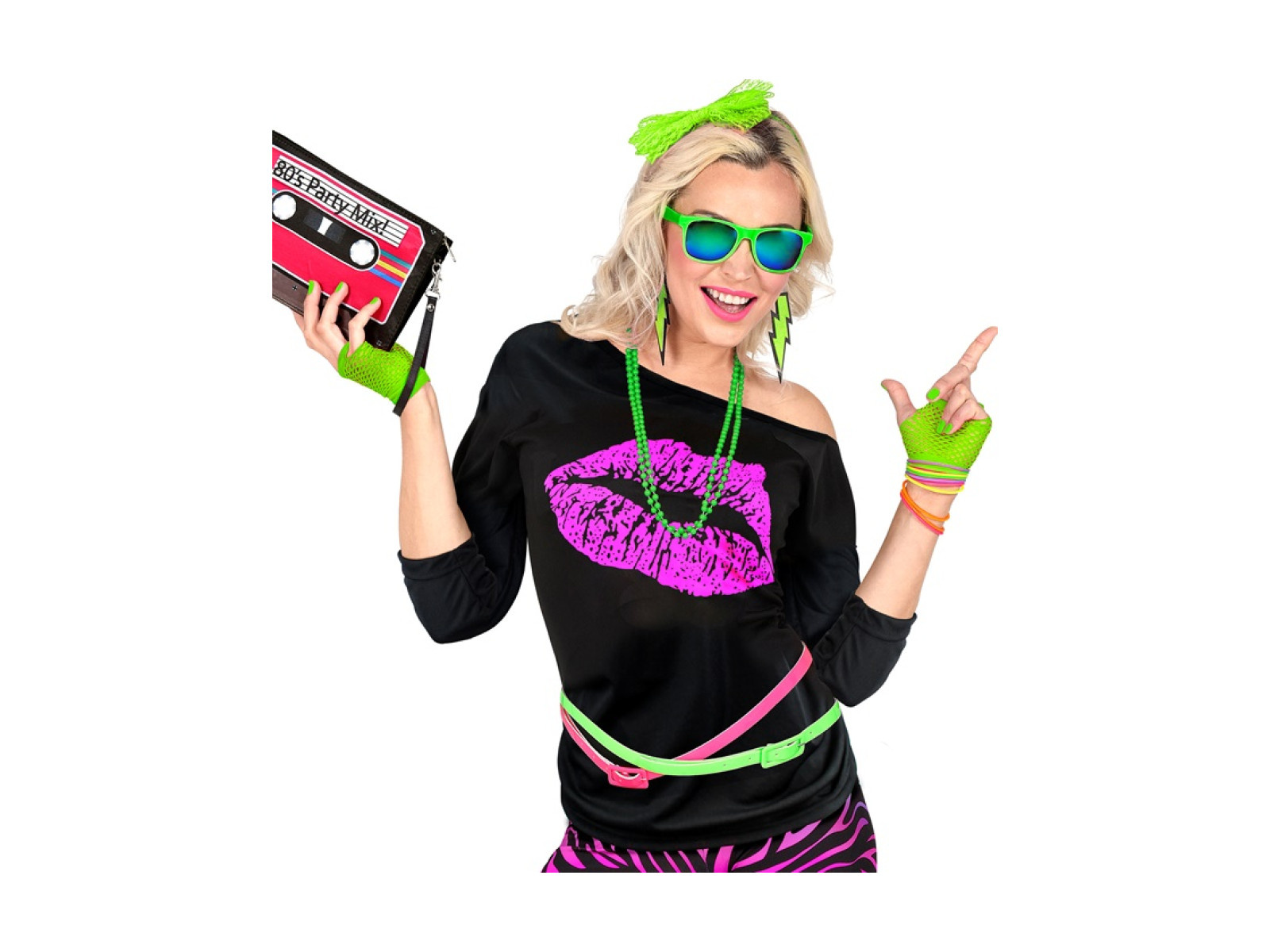 Neonowo zielone siateczkowe rękawiczki bez palców