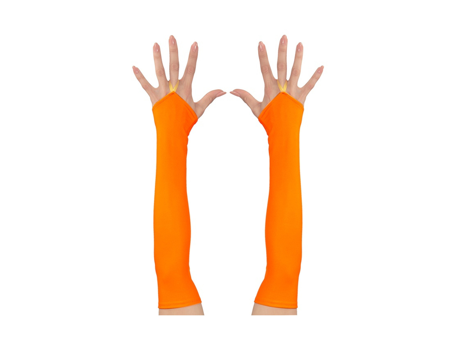 Neonowo pomarańczowe satynowe rękawiczki bez palców 43 cm