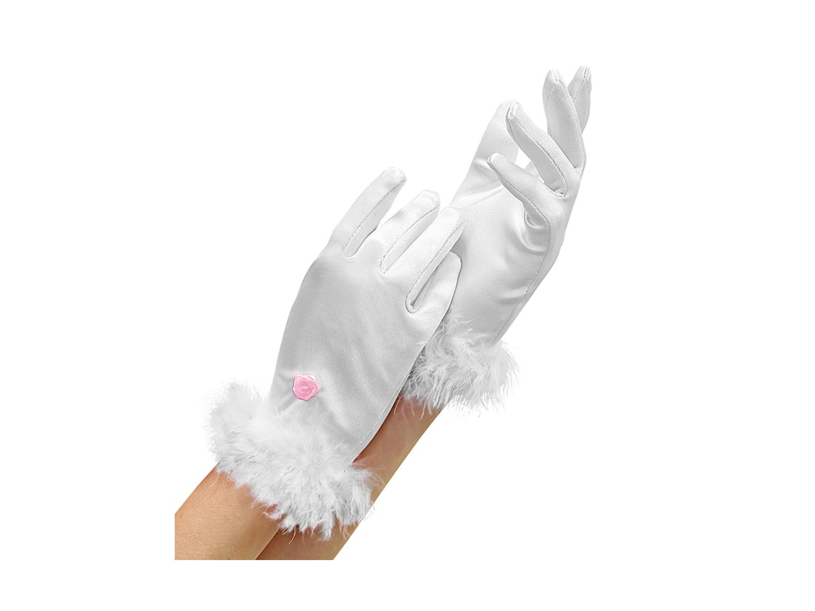 Białe satynowe rękawiczki z obszyciem - dla dzieci