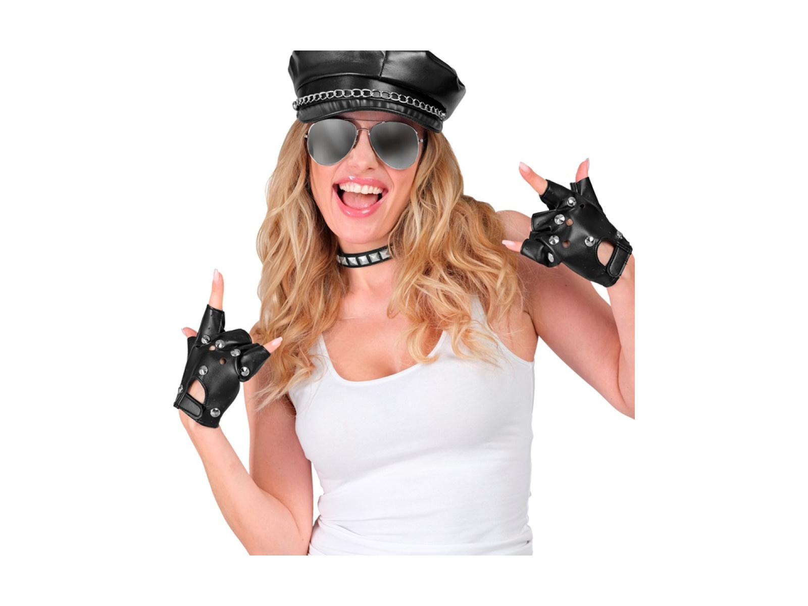 Skóropodobne rękawiczki nabijane ćwiekami bez palców