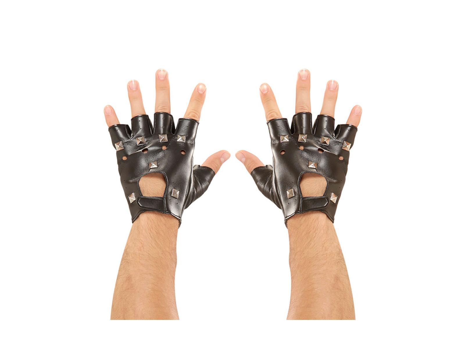 Skóropodobne rękawiczki nabijane ćwiekami bez palców