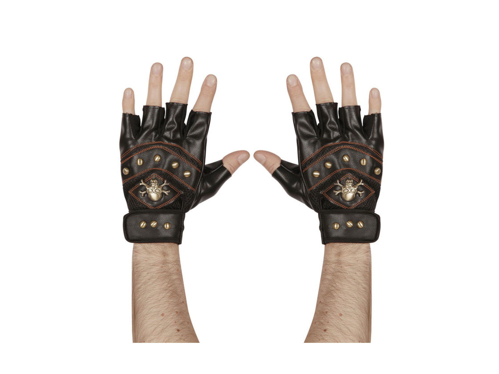 Skóropodobne rękawiczki bez palców z czaszką i piszczelami
