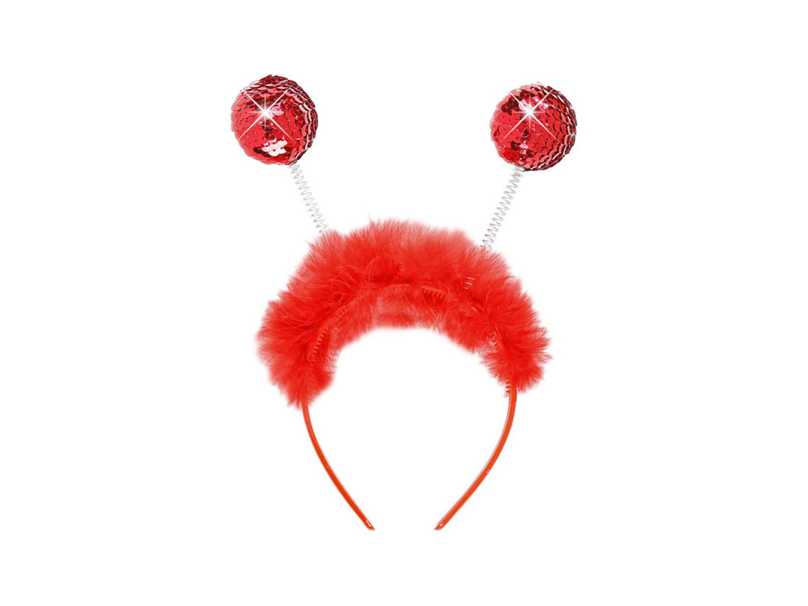 Opaska na głowę z czerwonymi cekinami i futerkiem