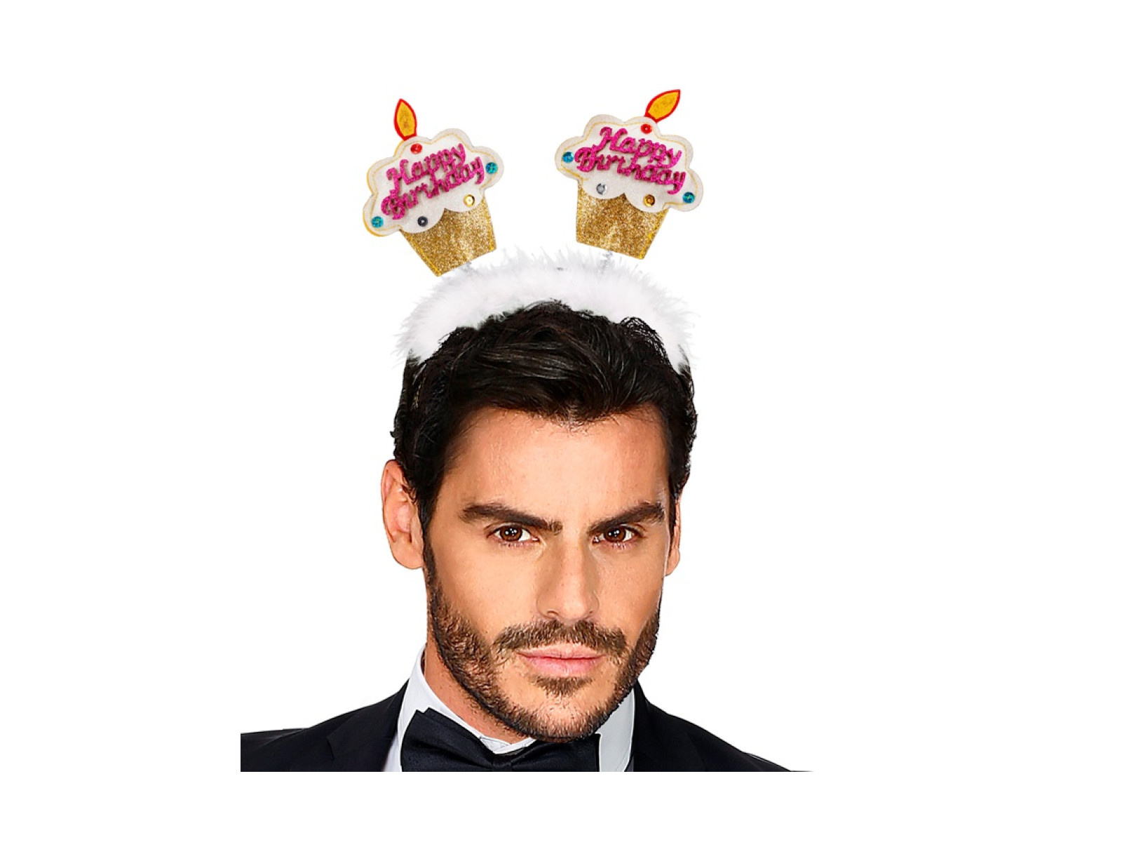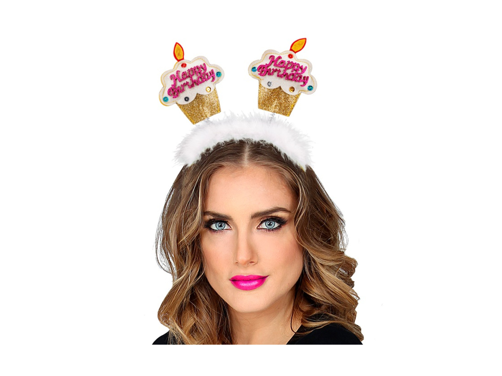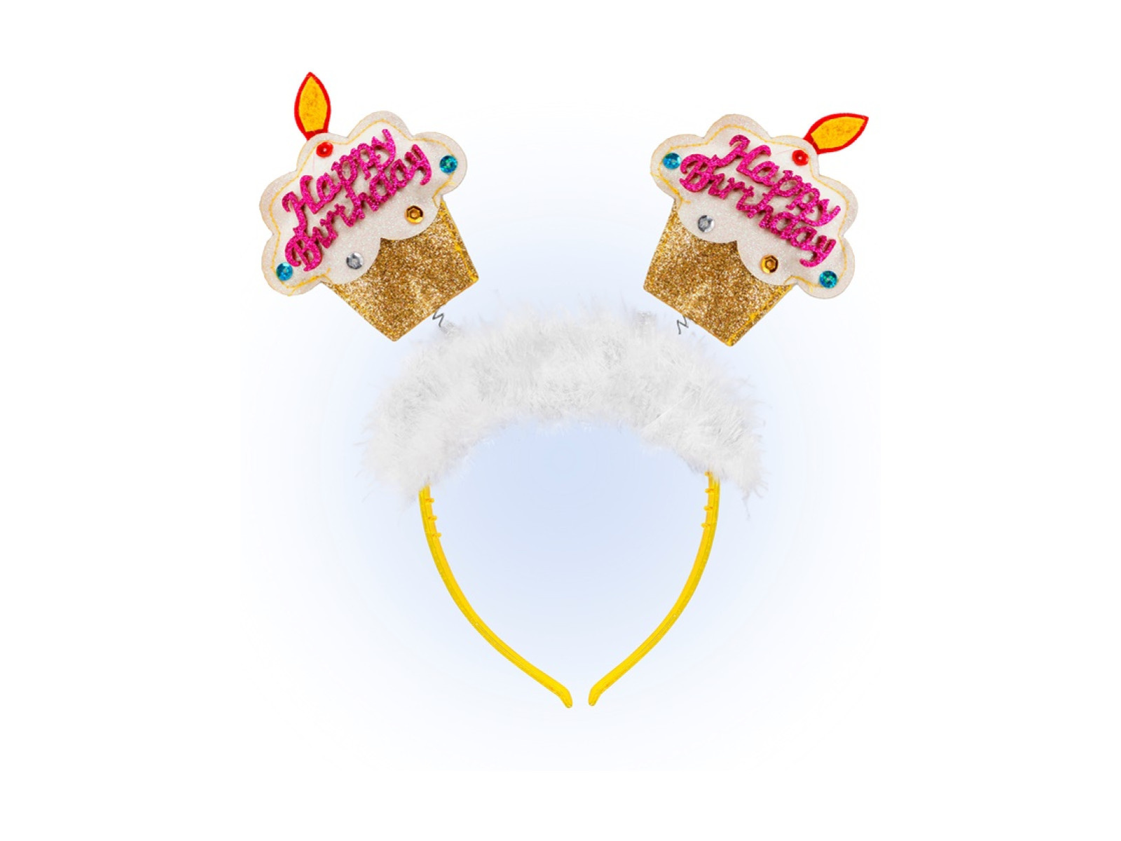 Opaska na głowę z futerkiem - babeczki urodzinowe