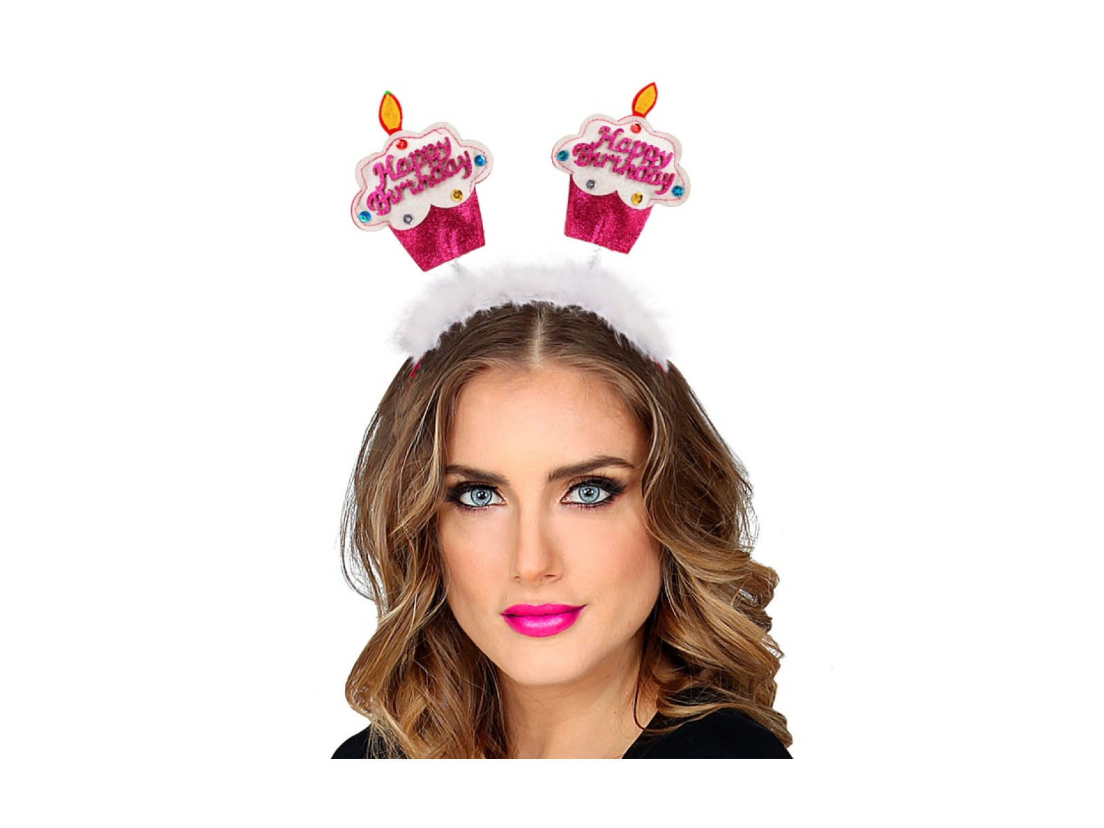 Opaska na głowę z futerkiem - babeczki urodzinowe
