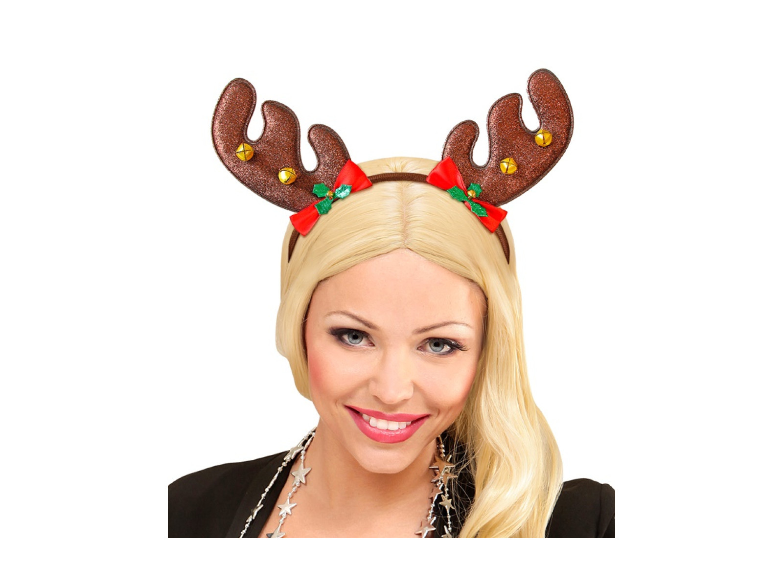 Opaska na głowę rogi renifera z kokardkami i dzwoneczkami