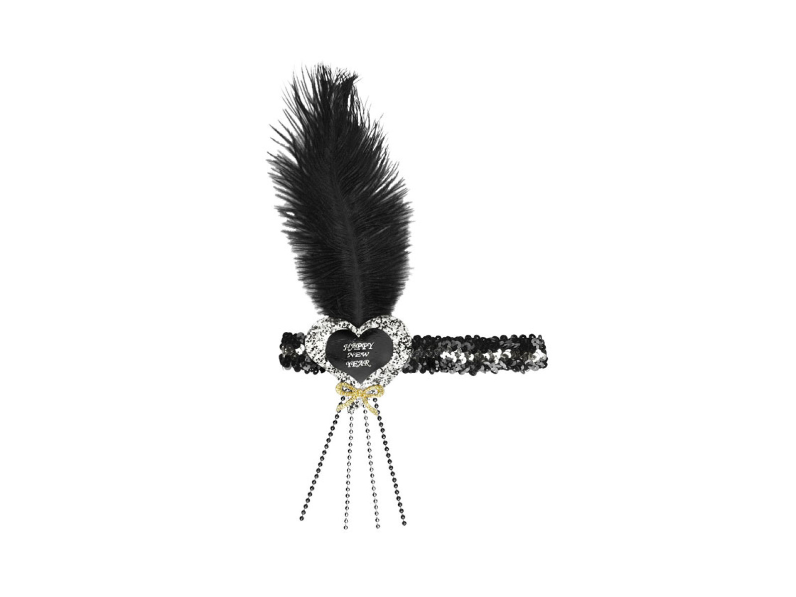 Czarno-srebrna cekinowa opaska Happy New Year (serce)