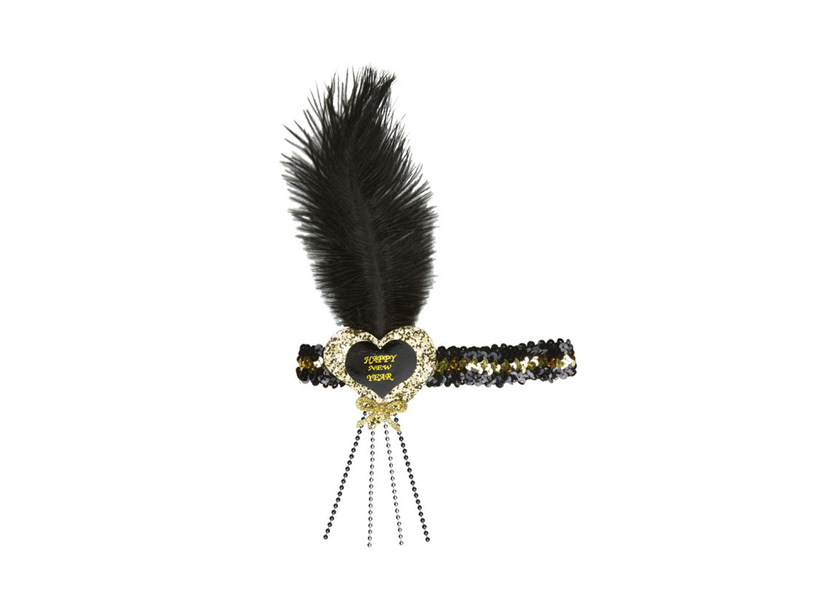 Czarno-złota cekinowa opaska Happy New Year (serce)
