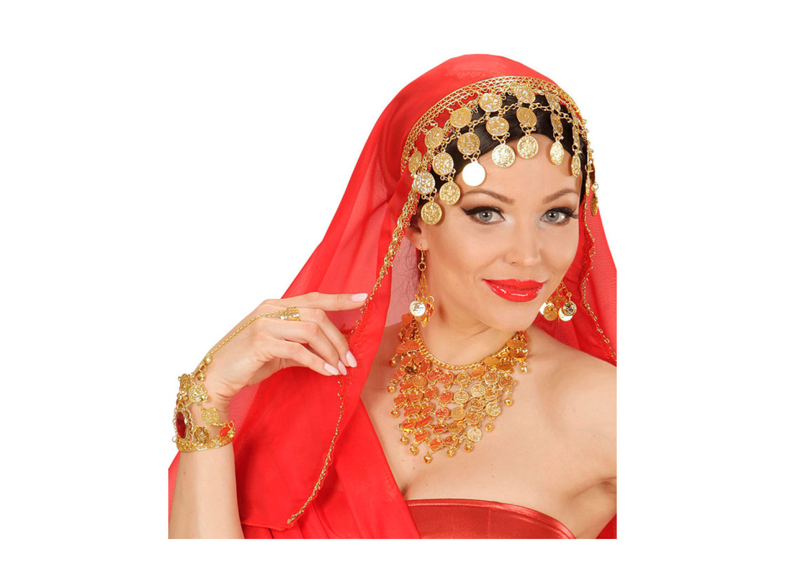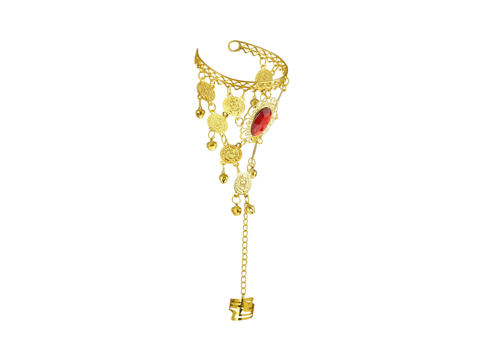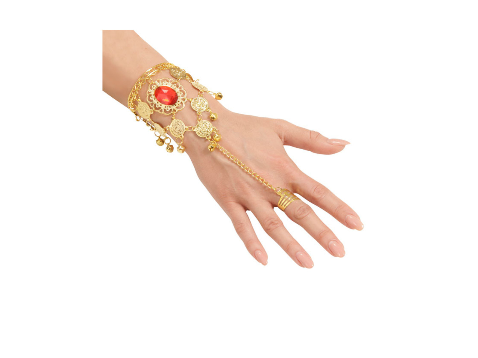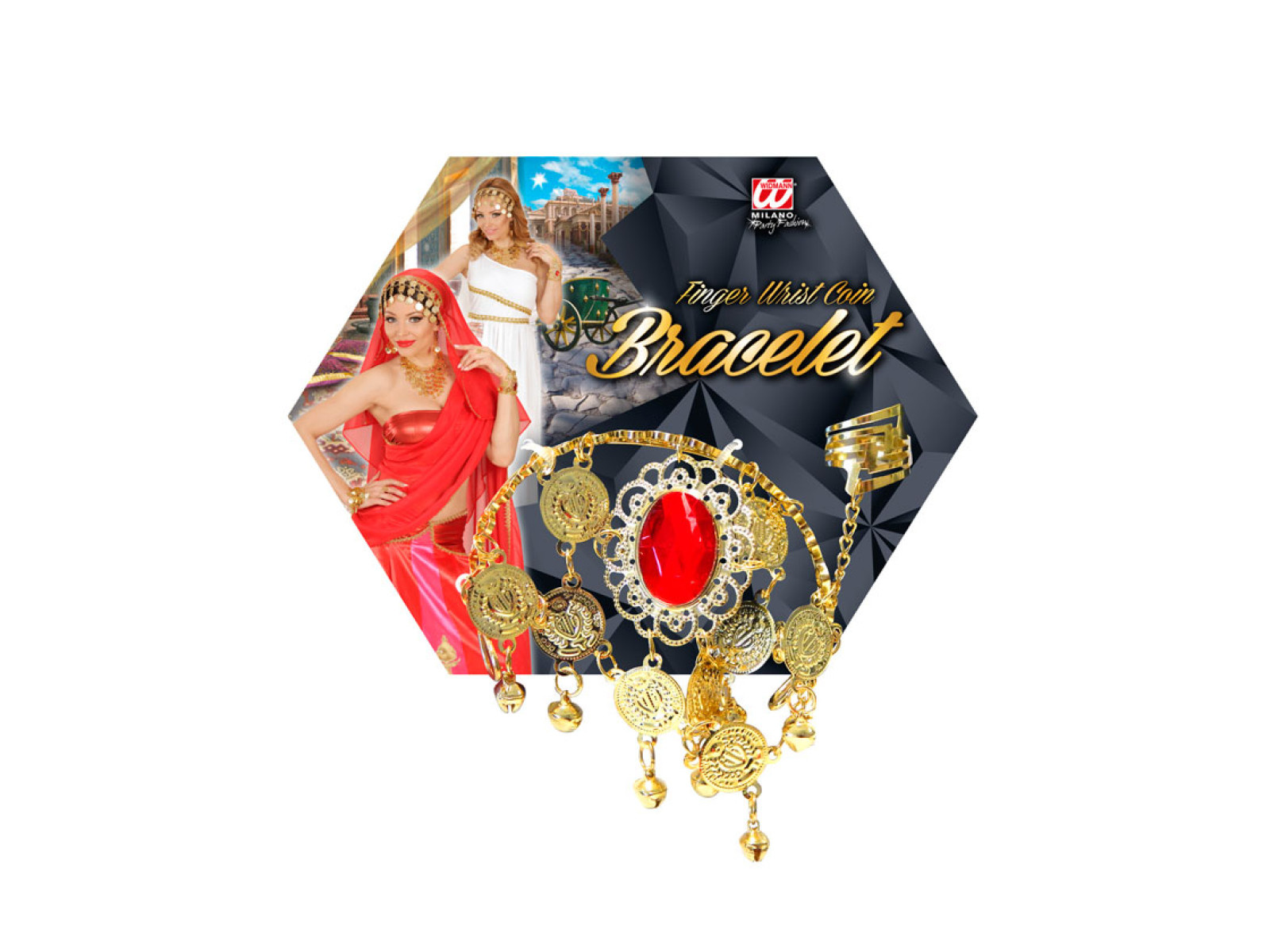 Złota bransoletka z monetami i pierścionkiem z gemem