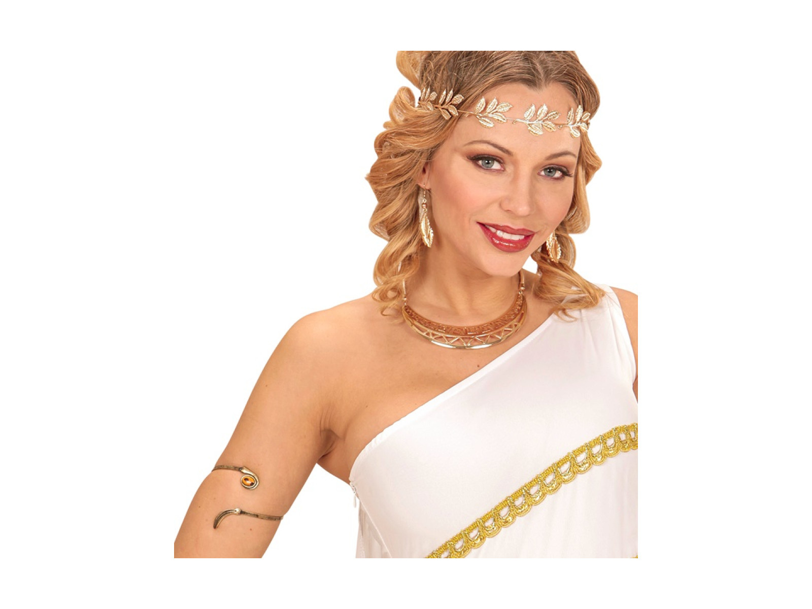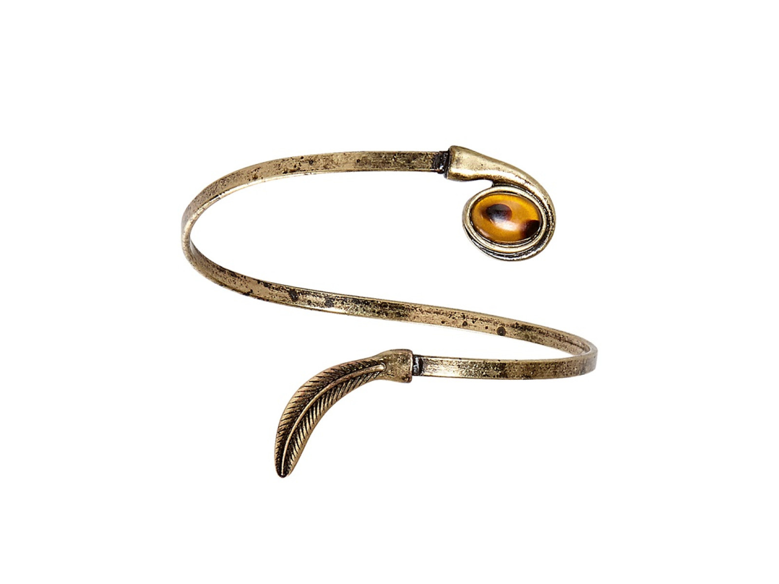 Postarzana złota opaska na ramię z liściem i bursztynowym oczkiem