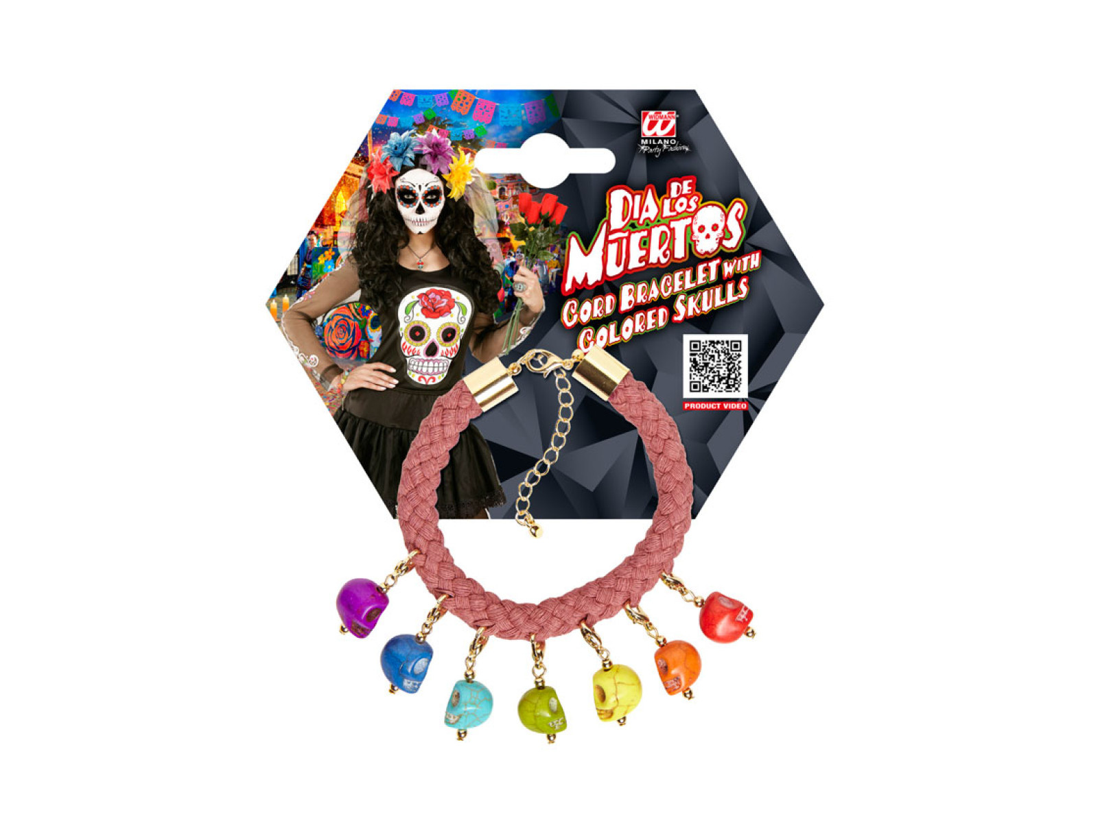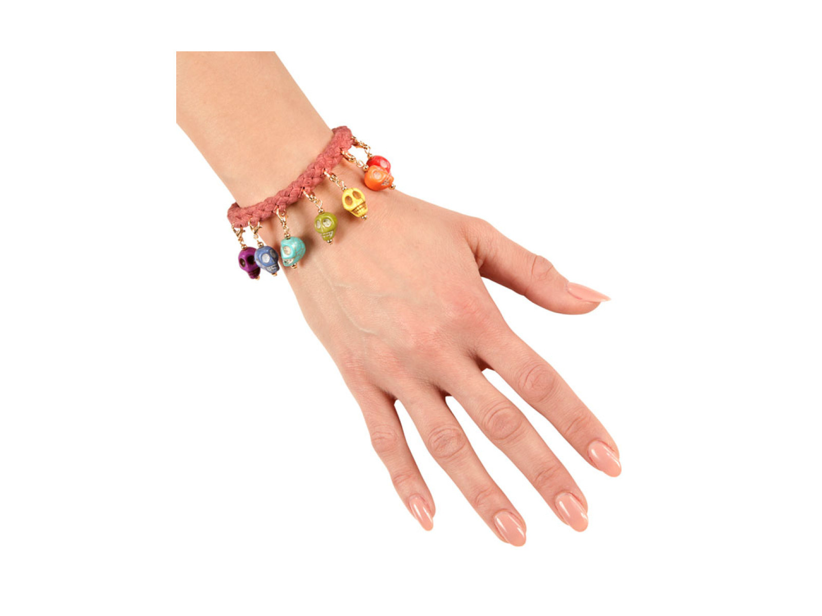 Sznurkowa bransoletka z 7 kolorowymi czaszkami
