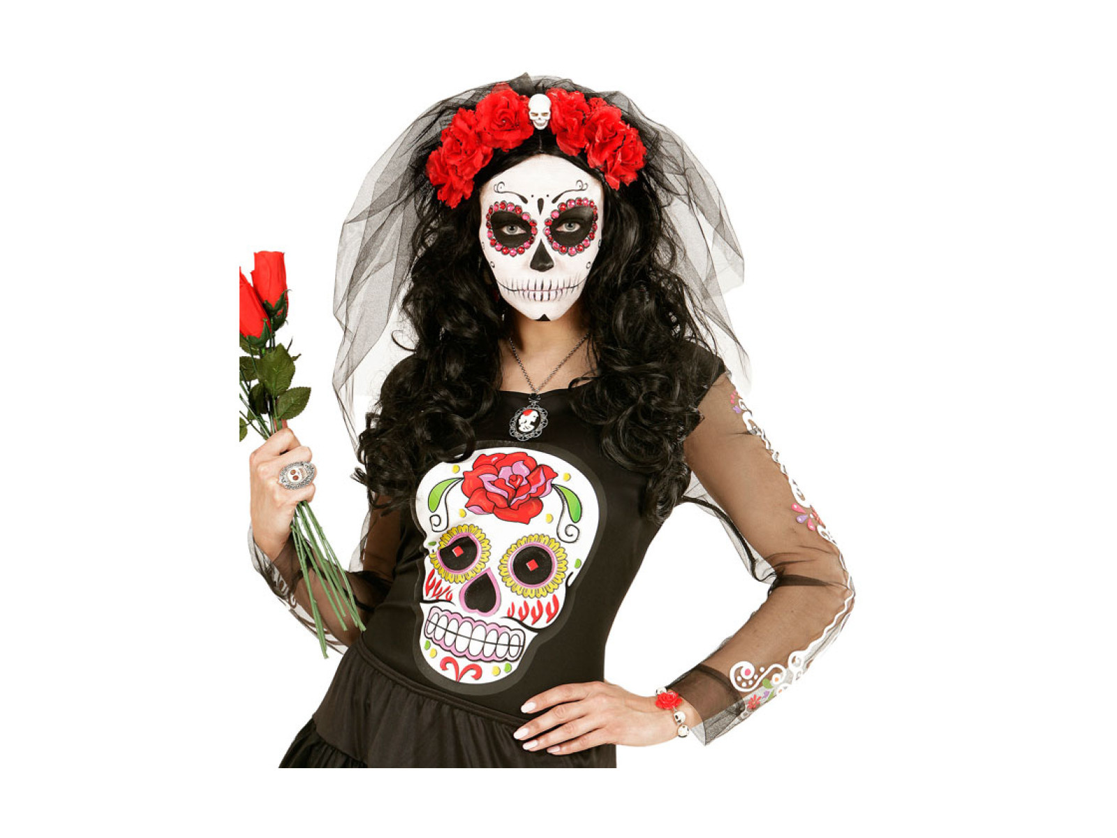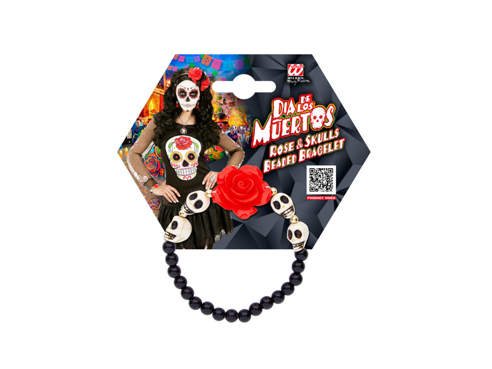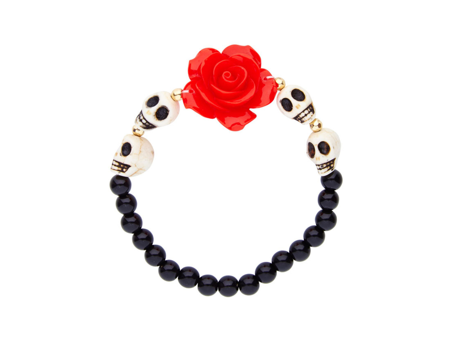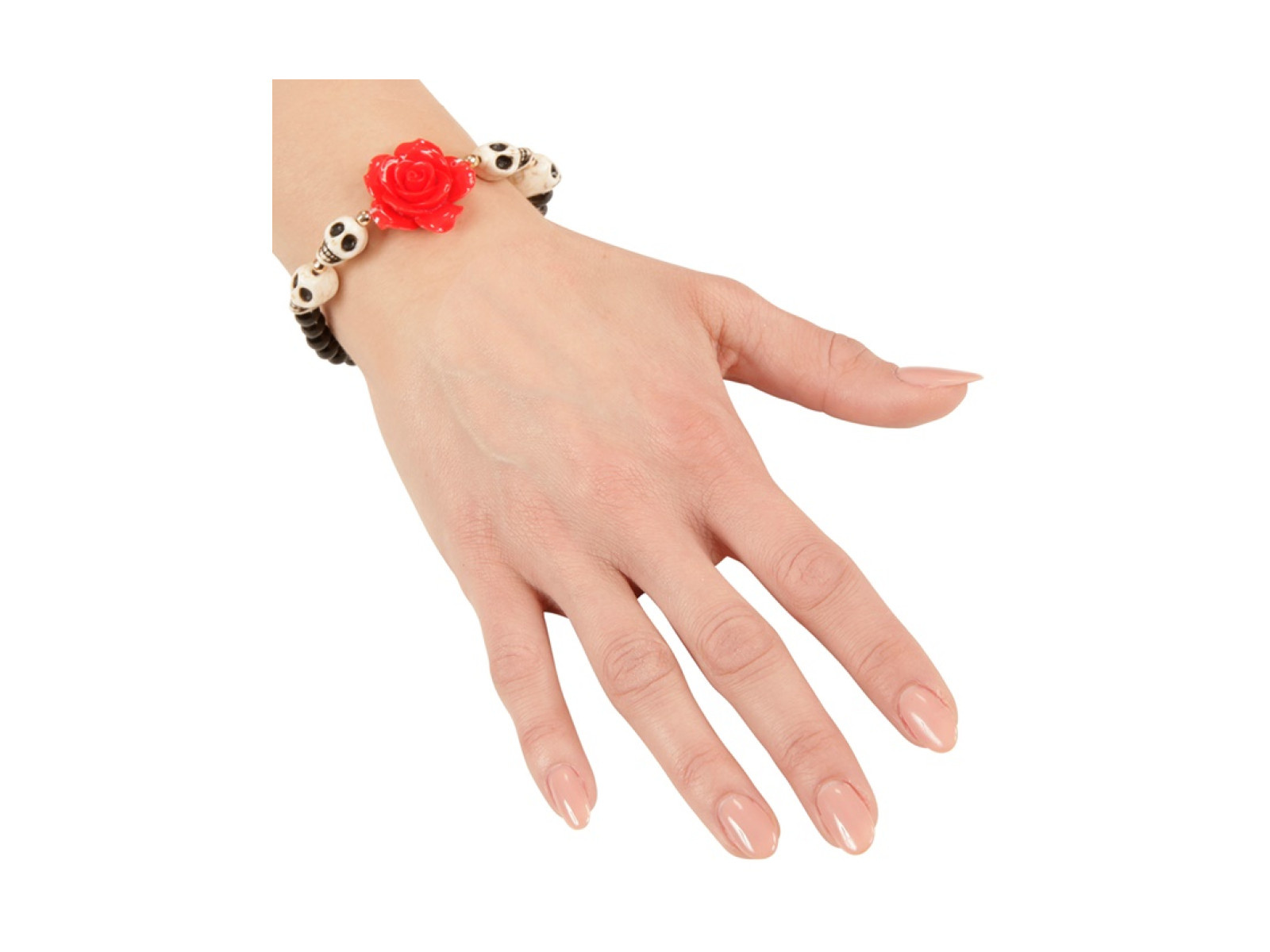 Bransoletka z czerwonymi różami i białymi czaszkami