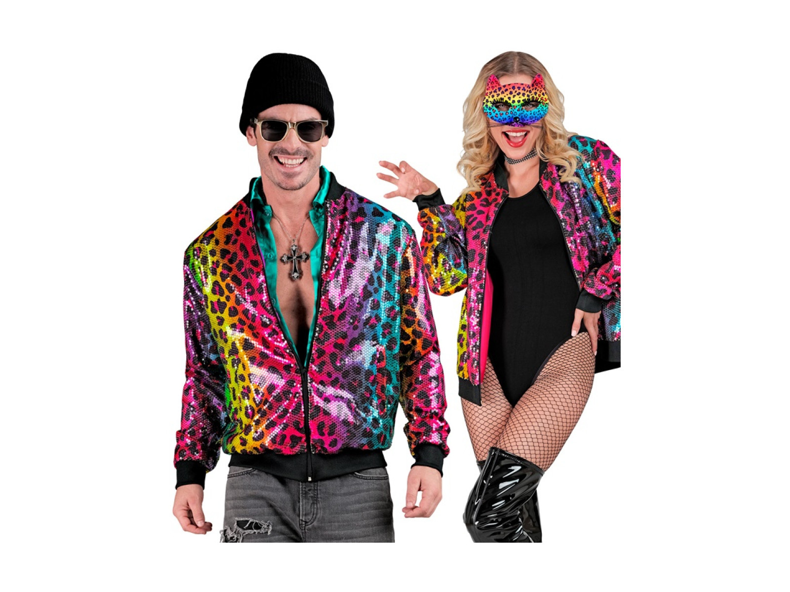 Imprezowa cekinowa kurtka - bomberka - tęczowy motyw panterki