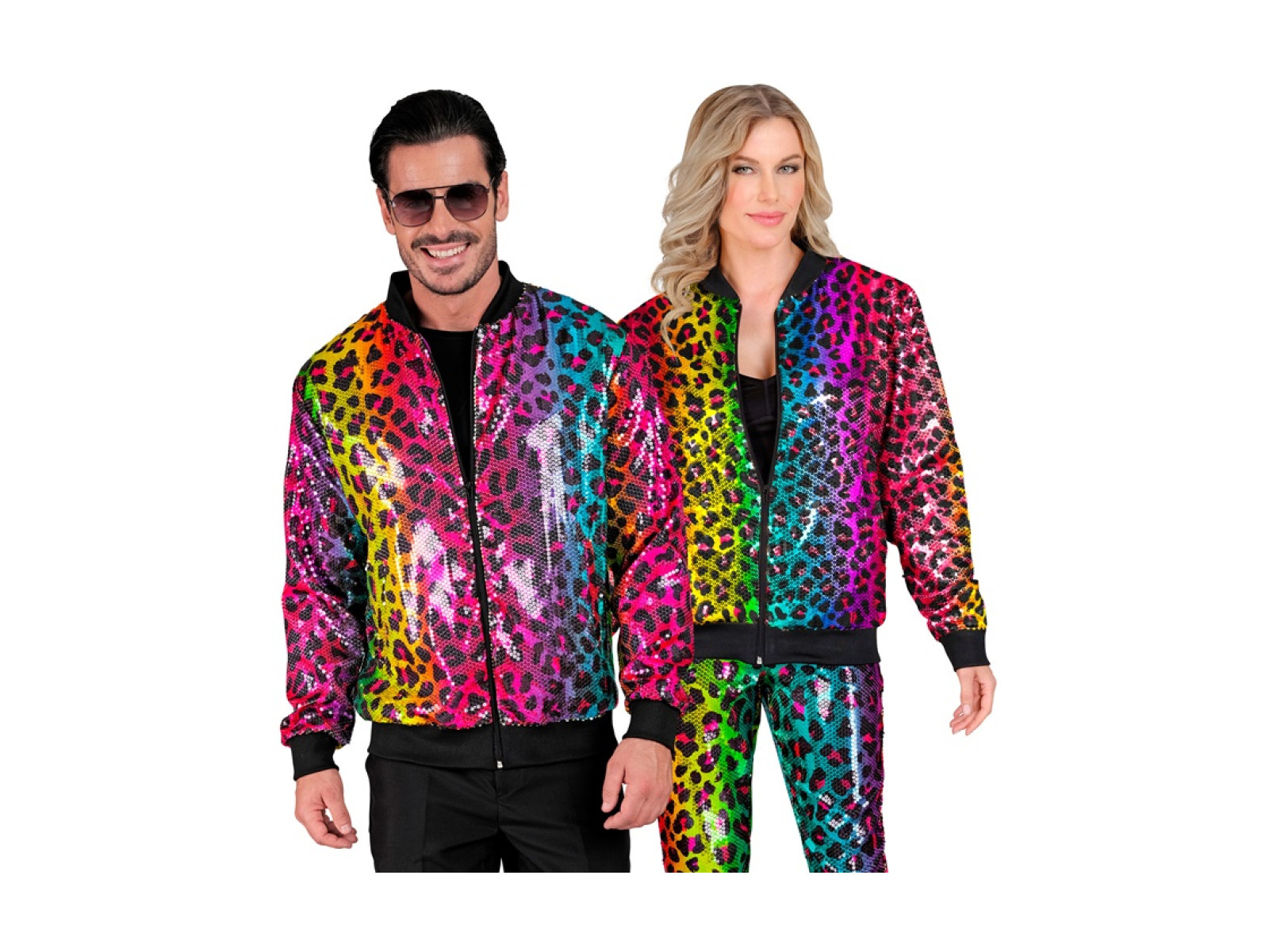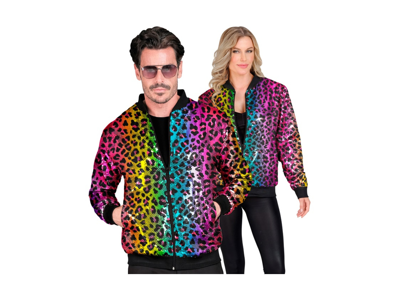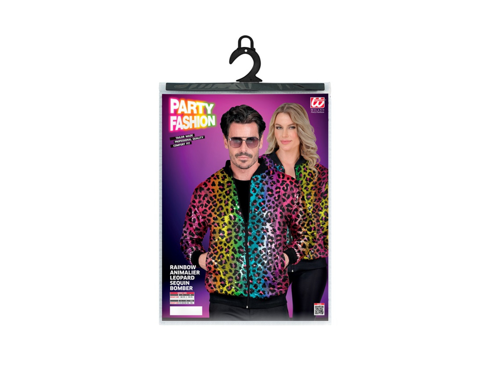Imprezowa cekinowa kurtka - bomberka - tęczowy motyw panterki