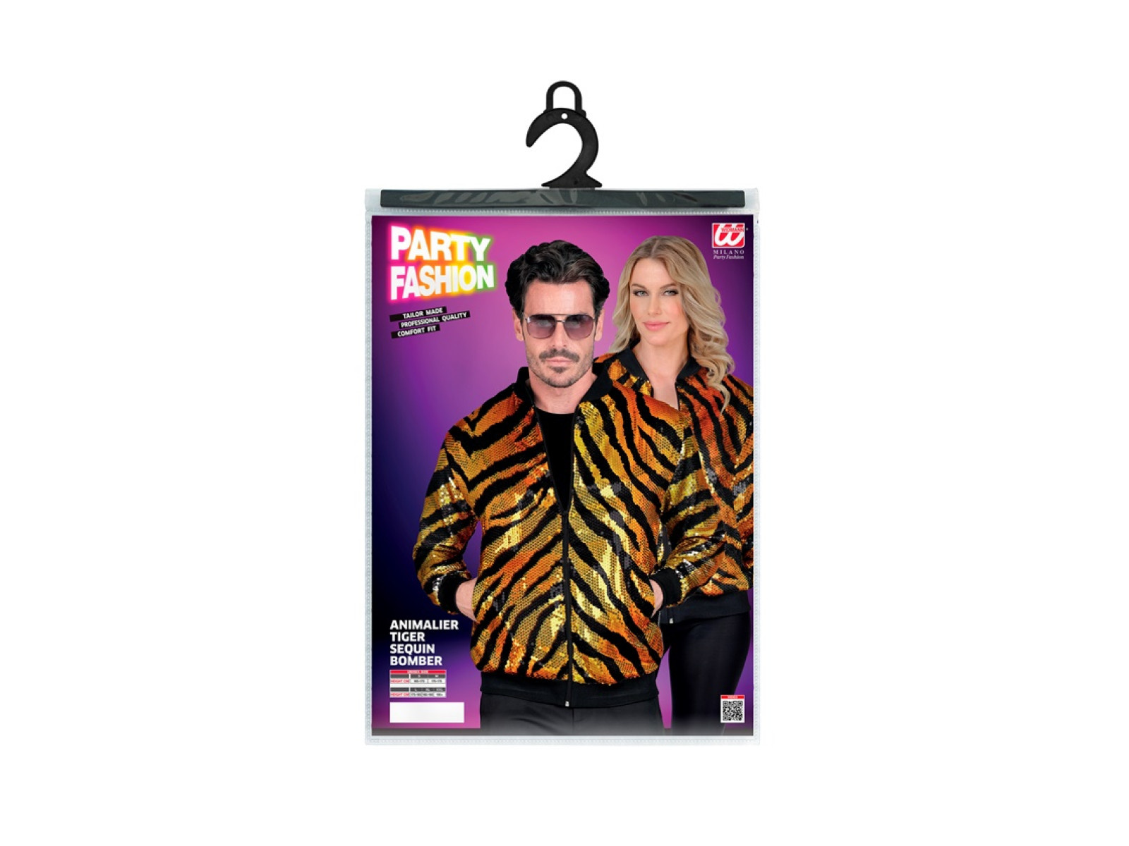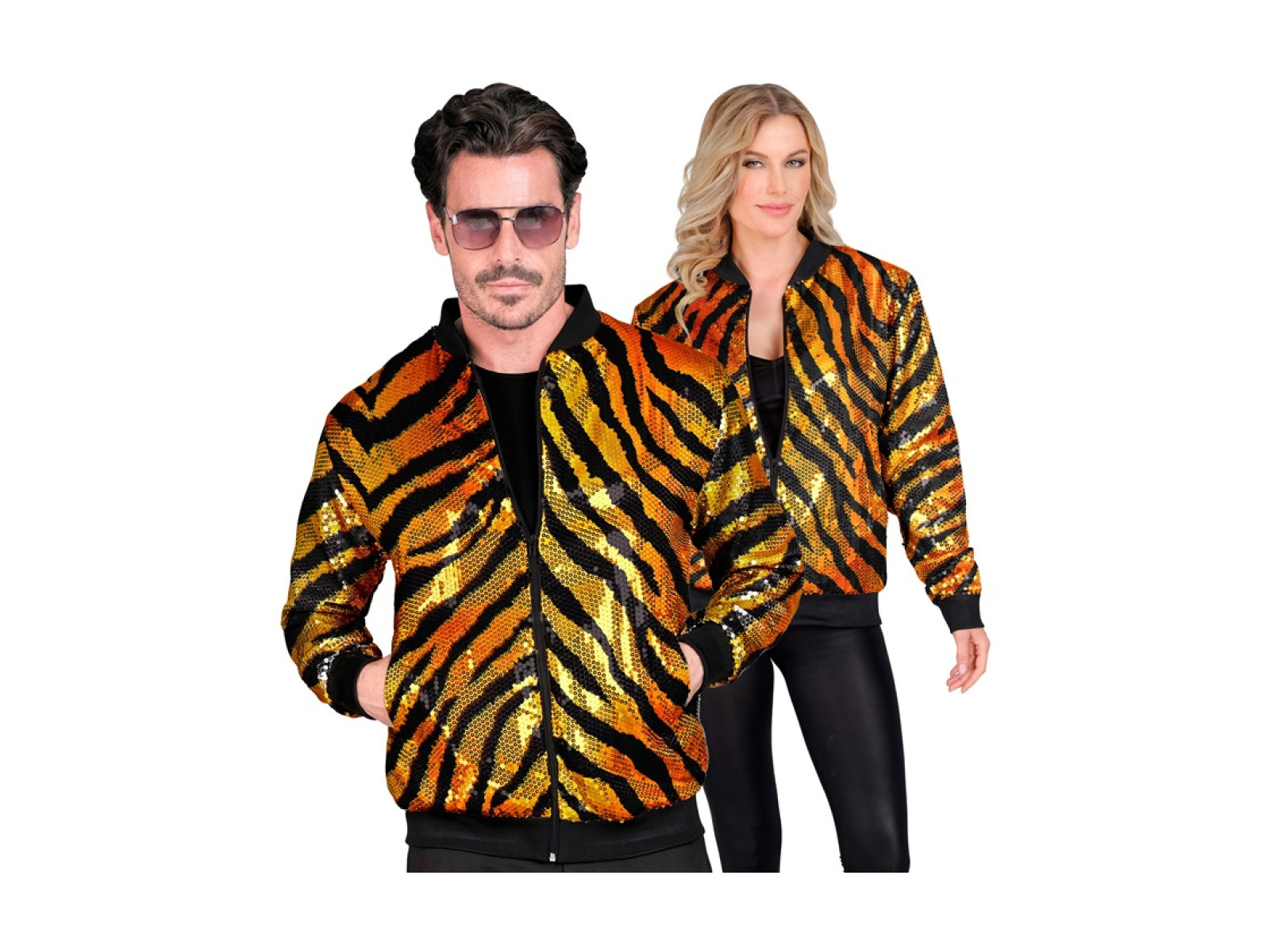 Pomarańczowa Imprezowa cekinowa kurtka - bomberka - motyw tygrysa
