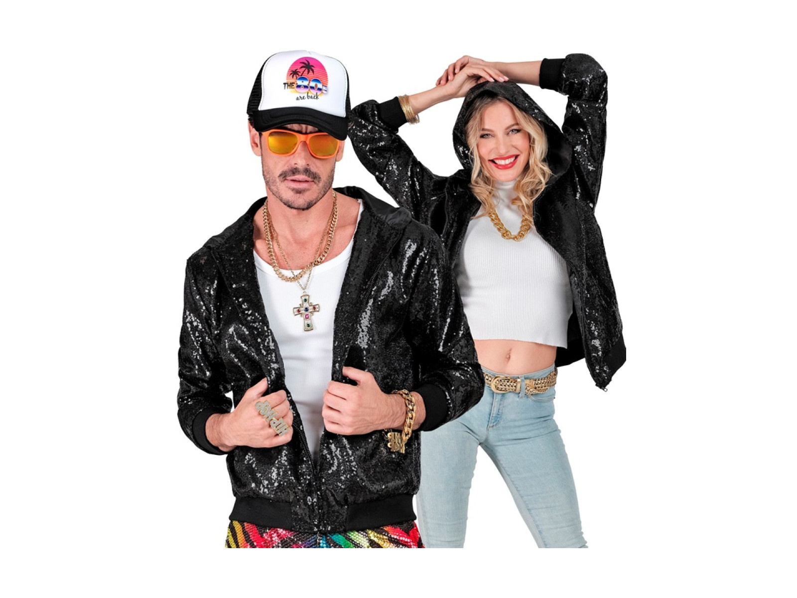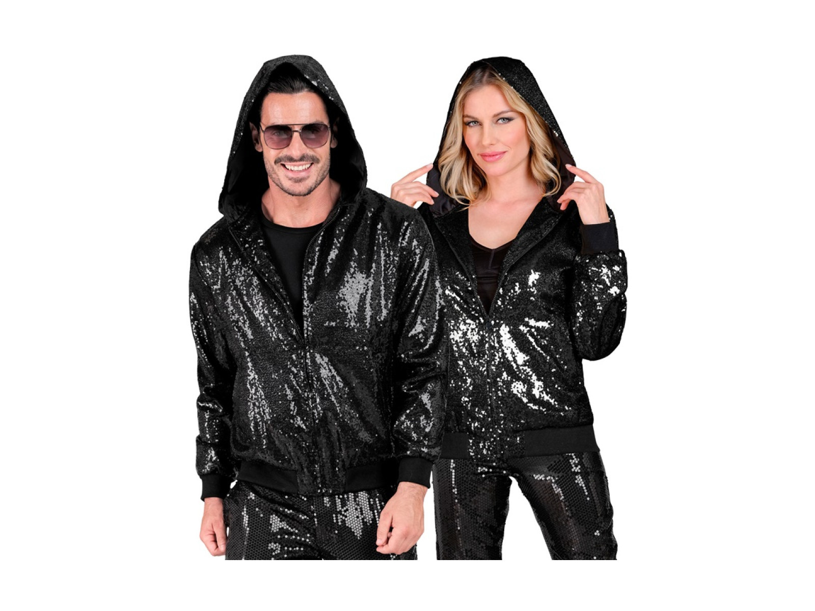 Imprezowa cekinowa kurtka - bomberka z kapturem - czarna