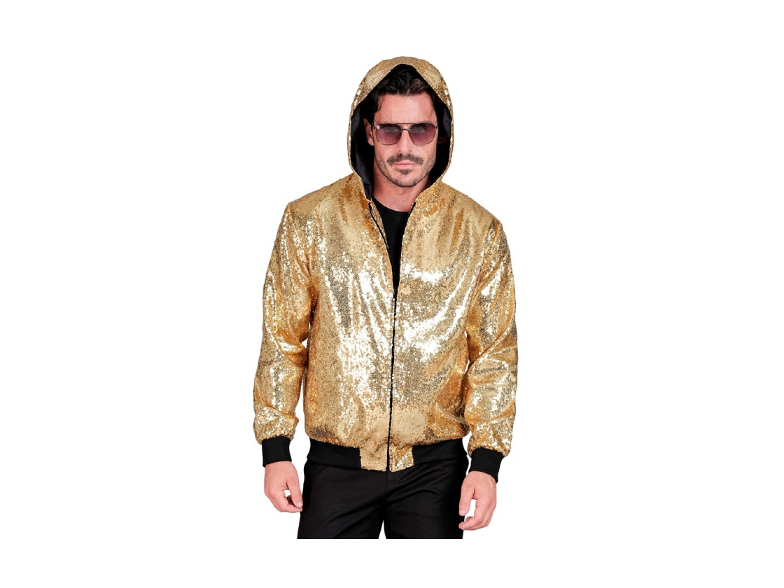 Imprezowa cekinowa kurtka - bomberka z kapturem - złota