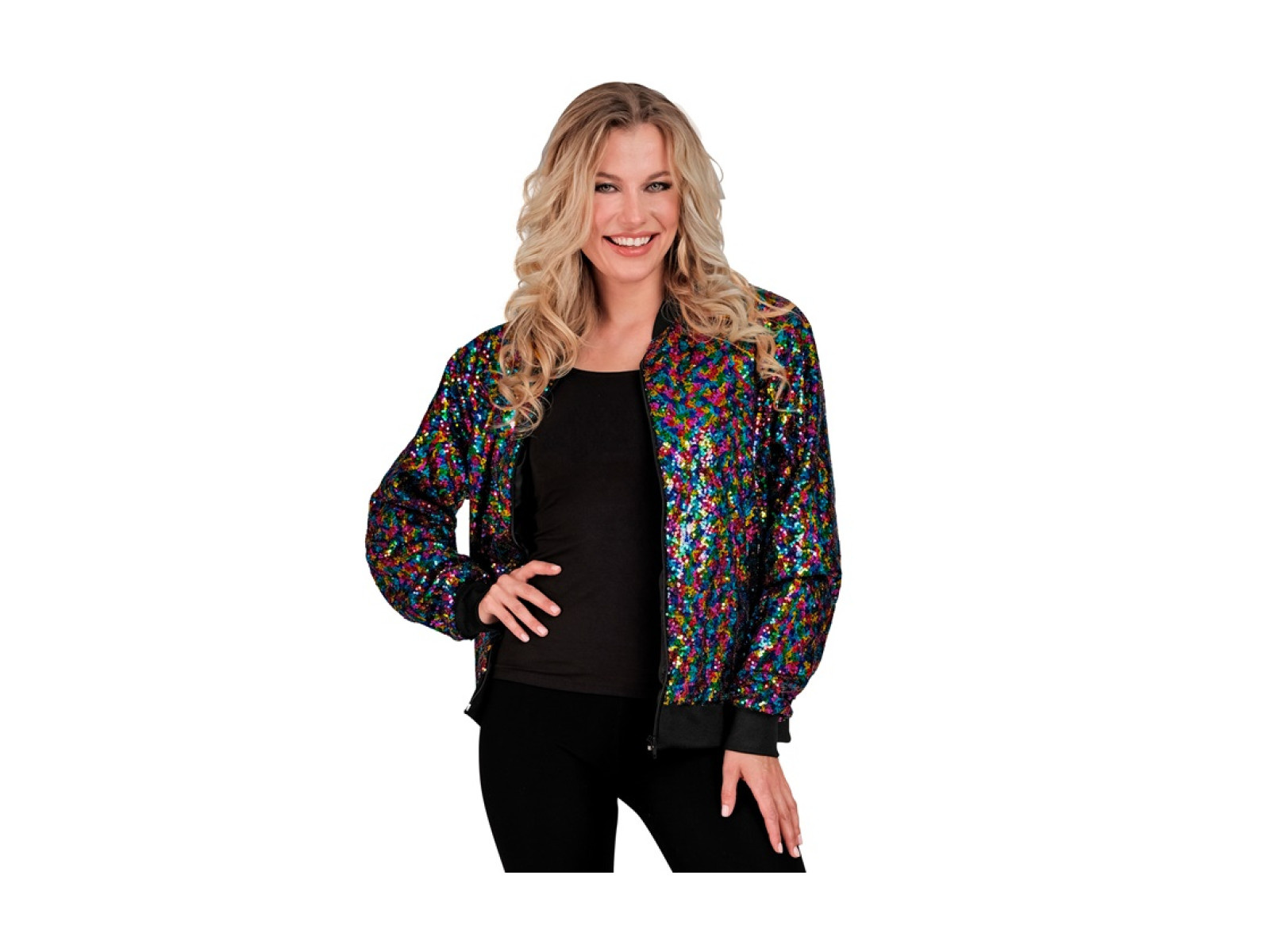 Imprezowa cekinowa kurtka - bomberka - multikolor