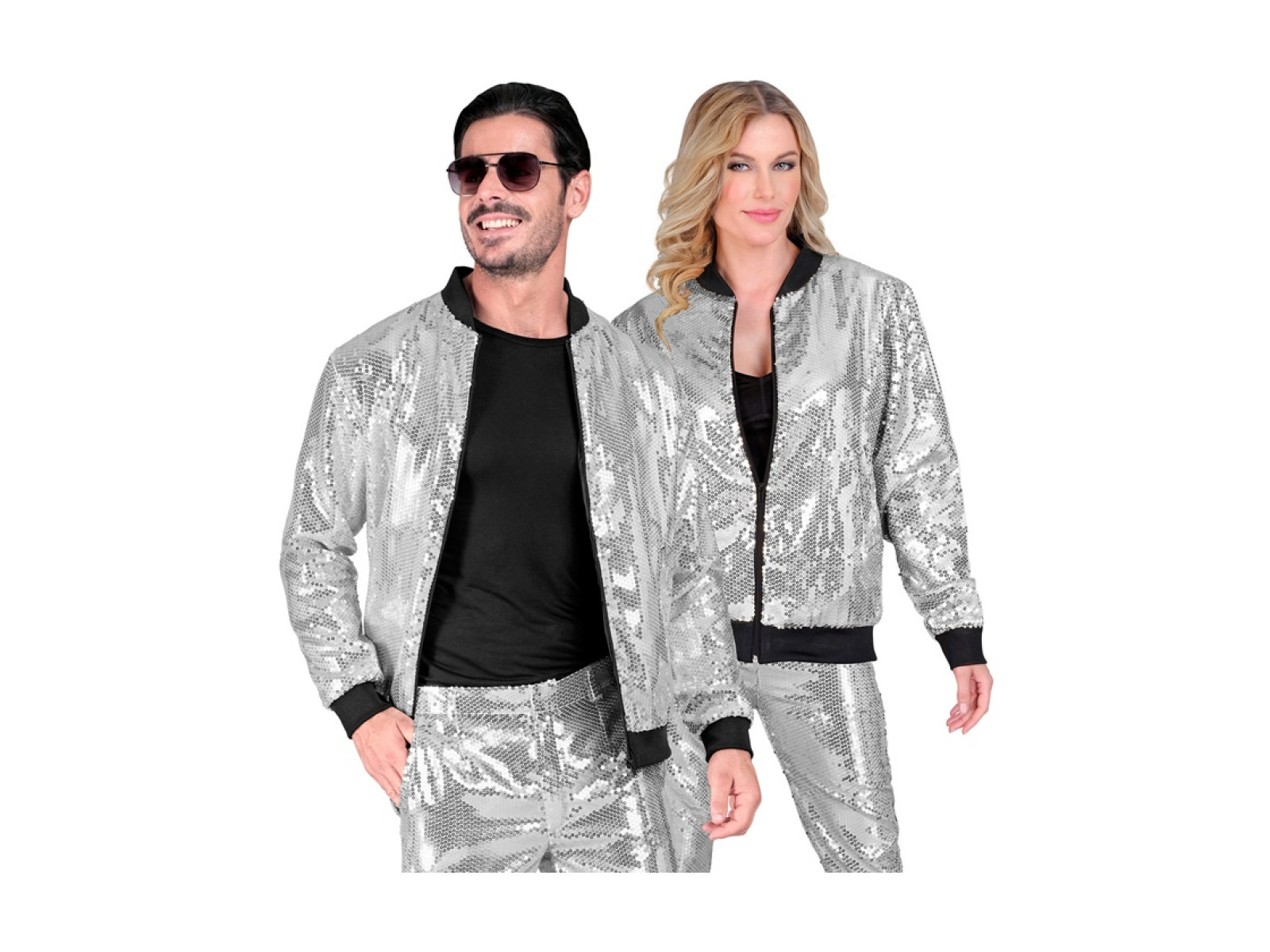 Imprezowa cekinowa kurtka - bomberka - srebrna