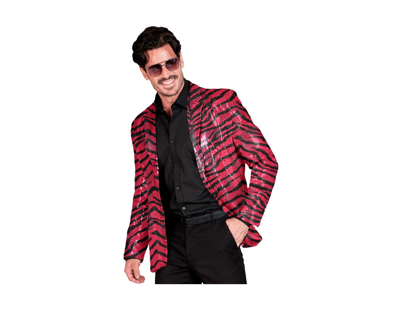 Imprezowa marynarka Party Fashion - różowa cekinowa z motywem zebry