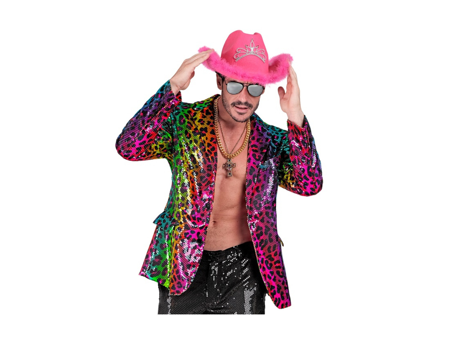 Imprezowa marynarka Party Fashion - tęczowa cekinowa panterka