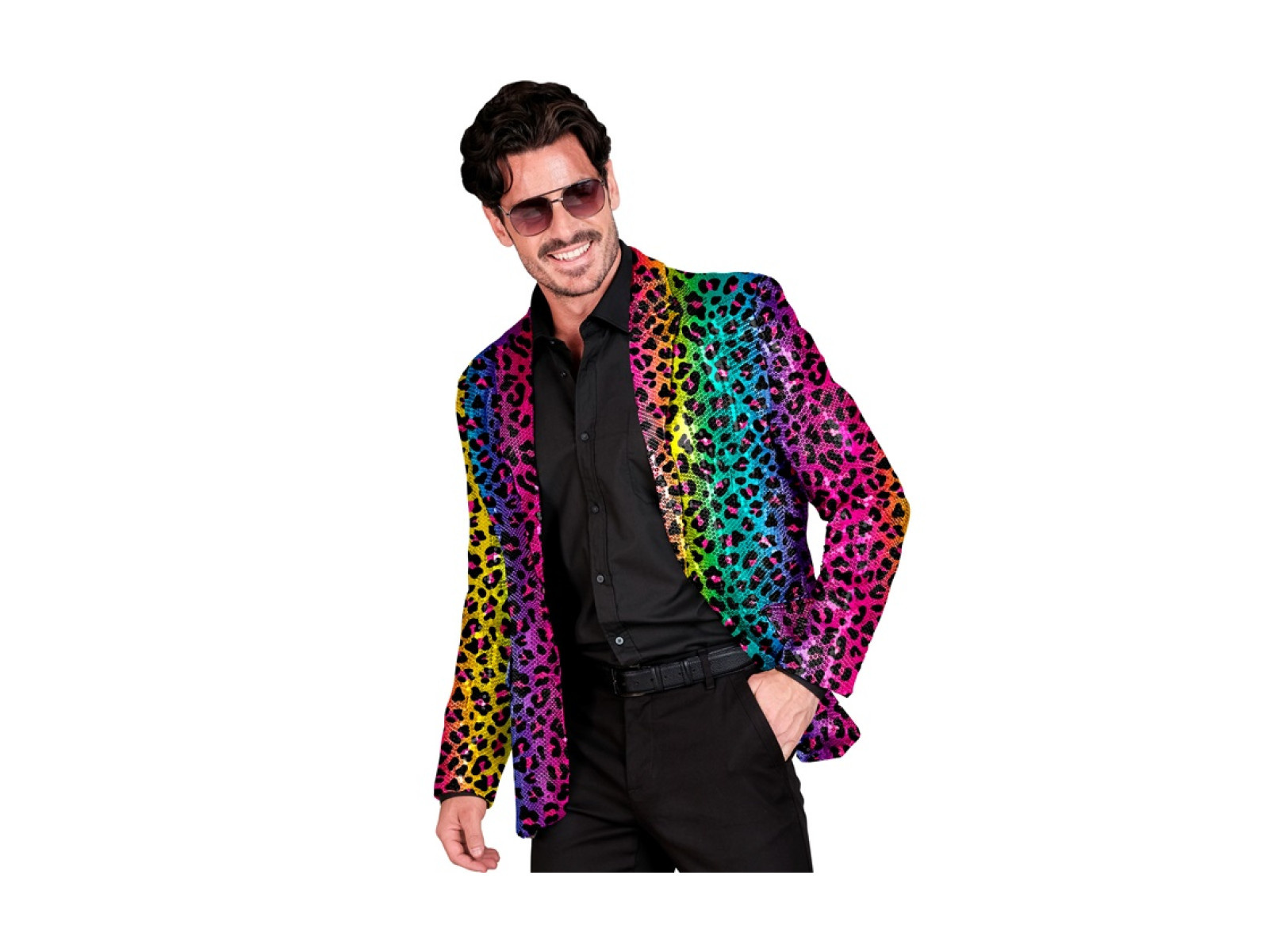 Imprezowa marynarka Party Fashion - tęczowa cekinowa panterka