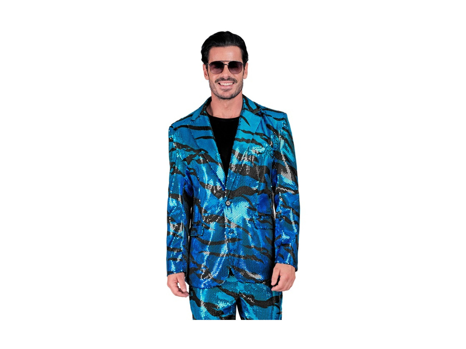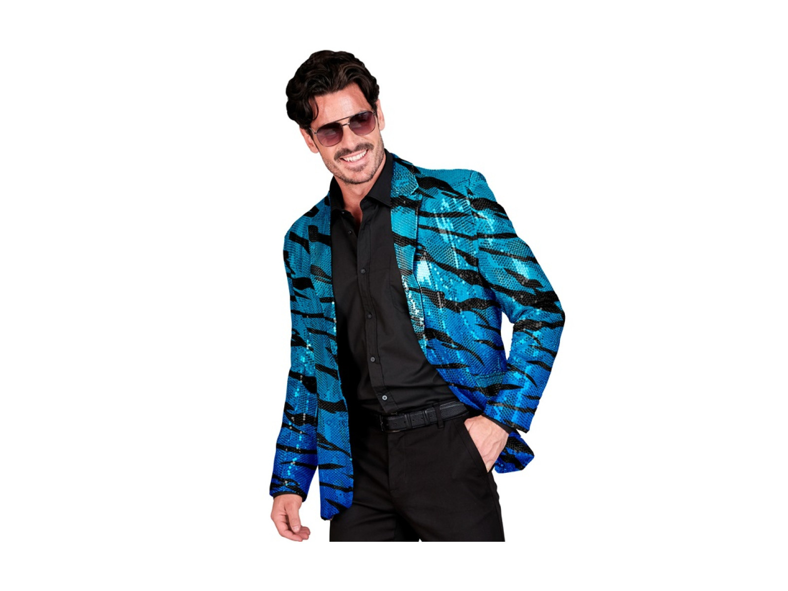 Imprezowa marynarka Party Fashion - niebieskie cekiny w falisty wzór