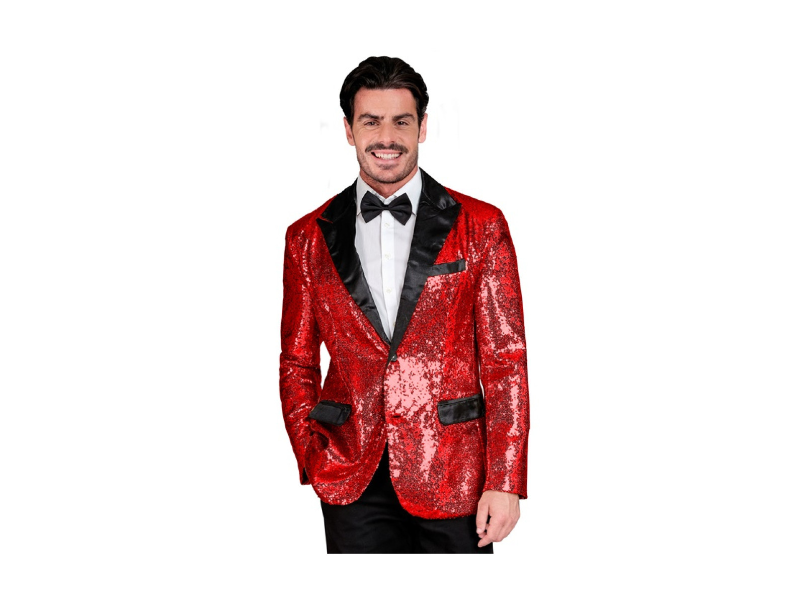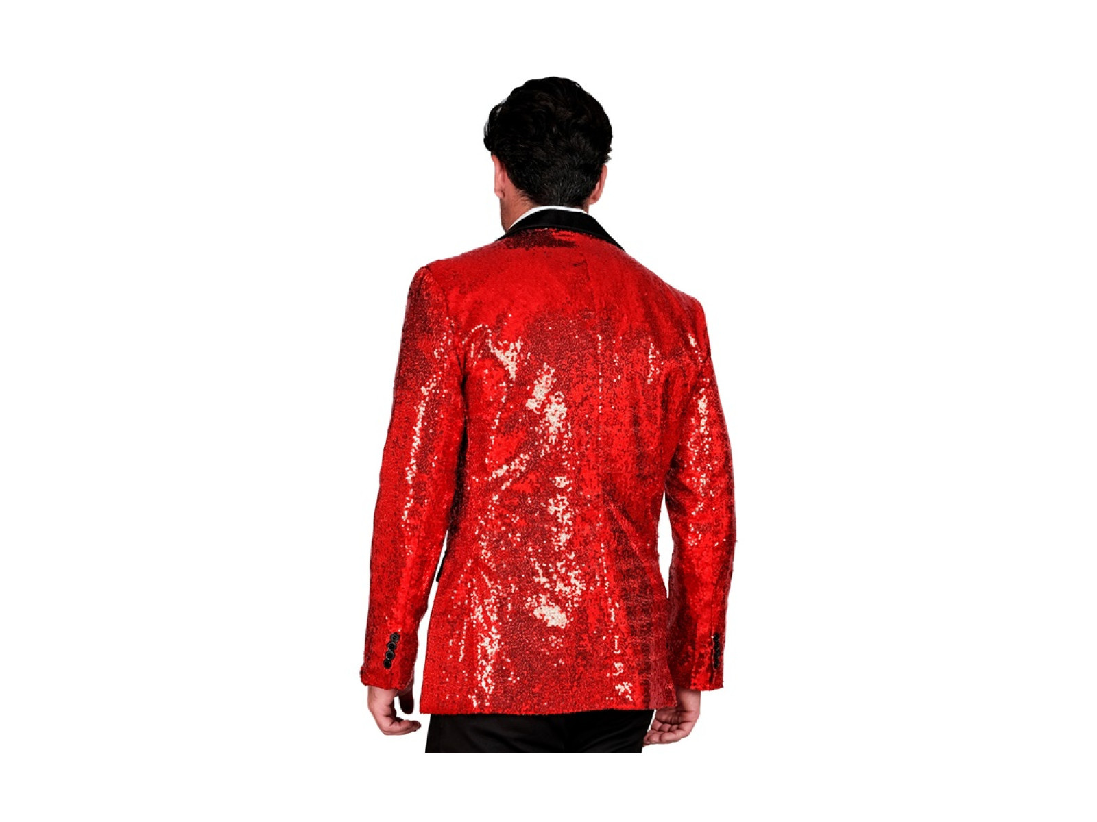 Imprezowa marynarka Party Fashion - czerwona cekinowa z satynowym kołnierzem i kieszeniami