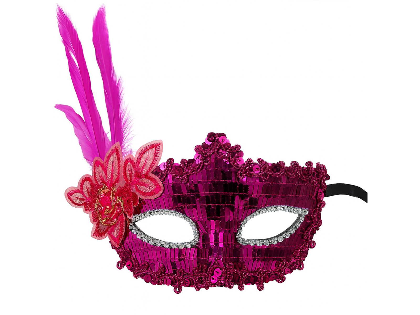Maska karnawałowa z piórami - fuksja - 1 szt.