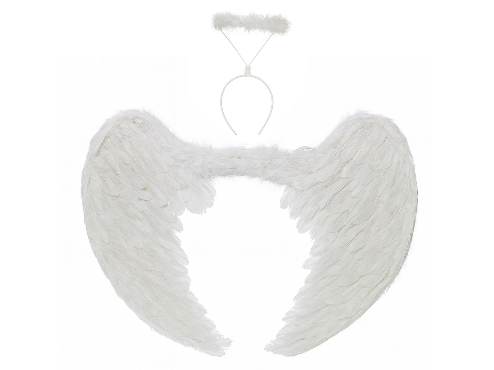 Zestaw skrzydła anioła białe 80 x 60 cm oraz Aureolka